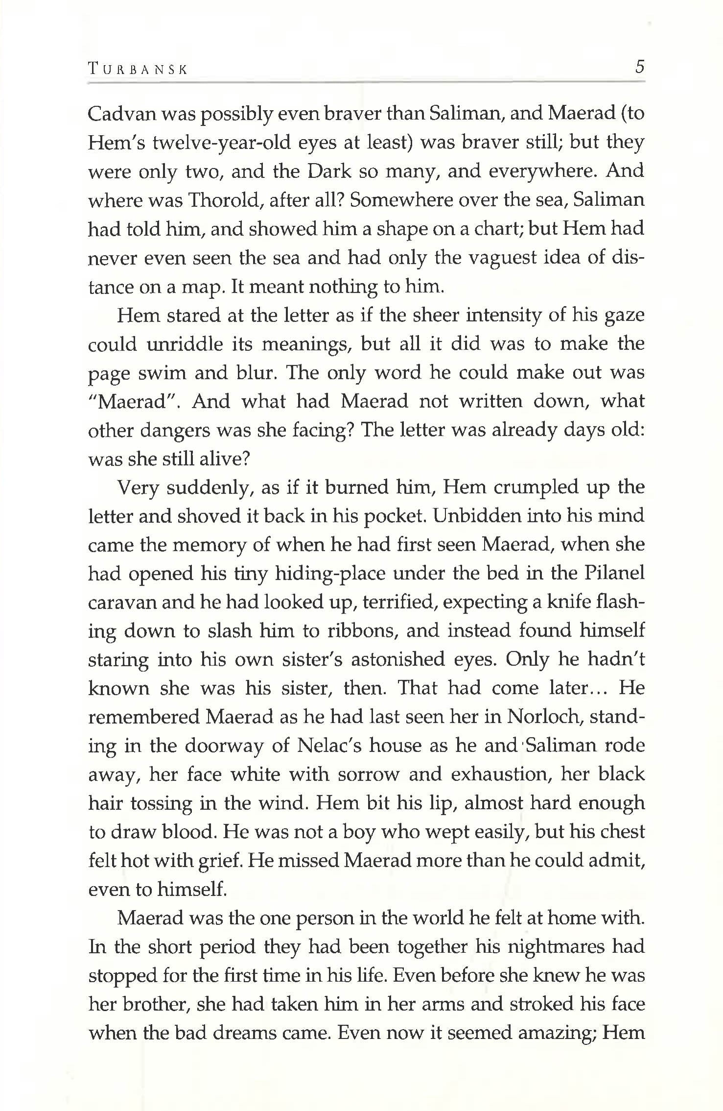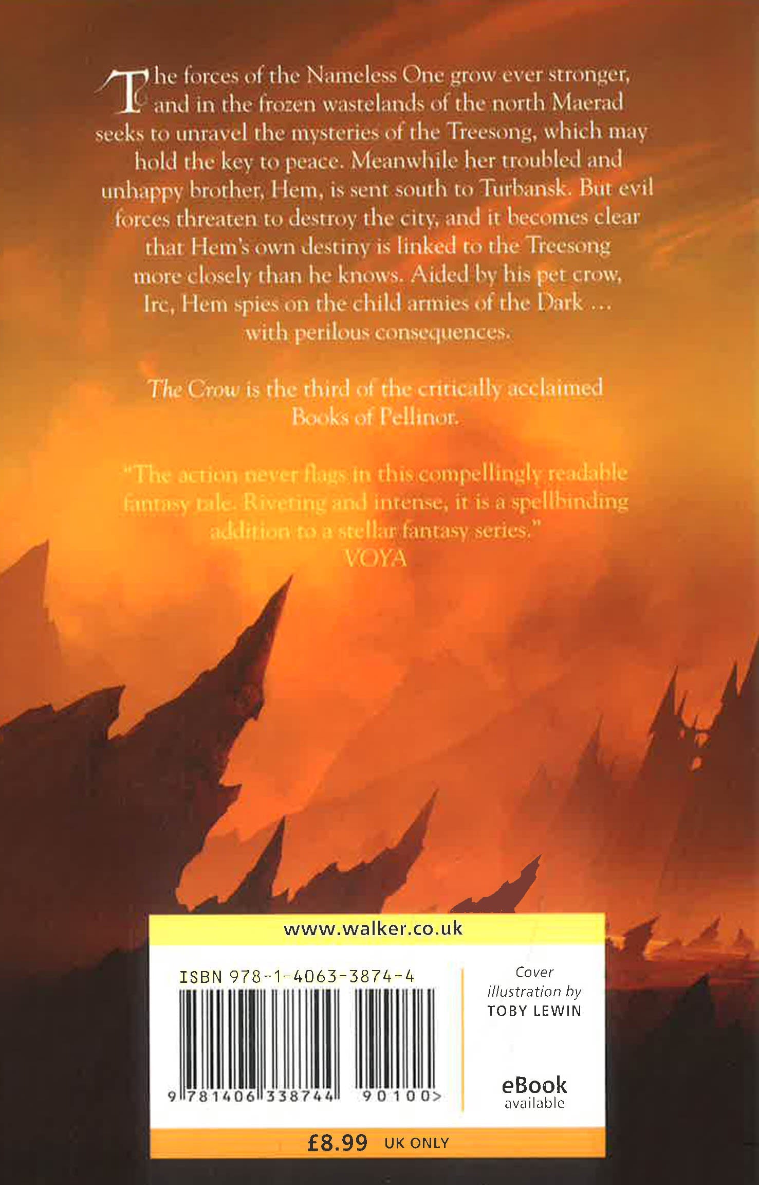 YA. Fantasy fiction. This is the third book in the epic "Pellinor" series, four books telling an extraordinary tale of another world. Whilst his sister, Maerad, pursues her dangerous destiny in the frozen North, Hem is sent south to Turbansk for his own safety. But soon the forces of the Dark overrun the great city and Hem flees with his mentor, Saliman, his white crow, Irc, and a young orphan girl, Zelika, to join the resistance. He agrees to help fight the Nameless One by spying on the child armies of the Dark. Now Hem has a vision, he too has a part to play in Maerad's quest for the Treesong. But Zelika has been captured by the child army, and Hem's destiny must wait. Hem pursues Zelika to the Dark's stronghold, little realizing that her cause is lost. He reunites with Saliman and, broken-hearted, starts the perilous search for his sister. In this title, "Lord of the Rings" meets "Ursula Le Guin", for a new generation.