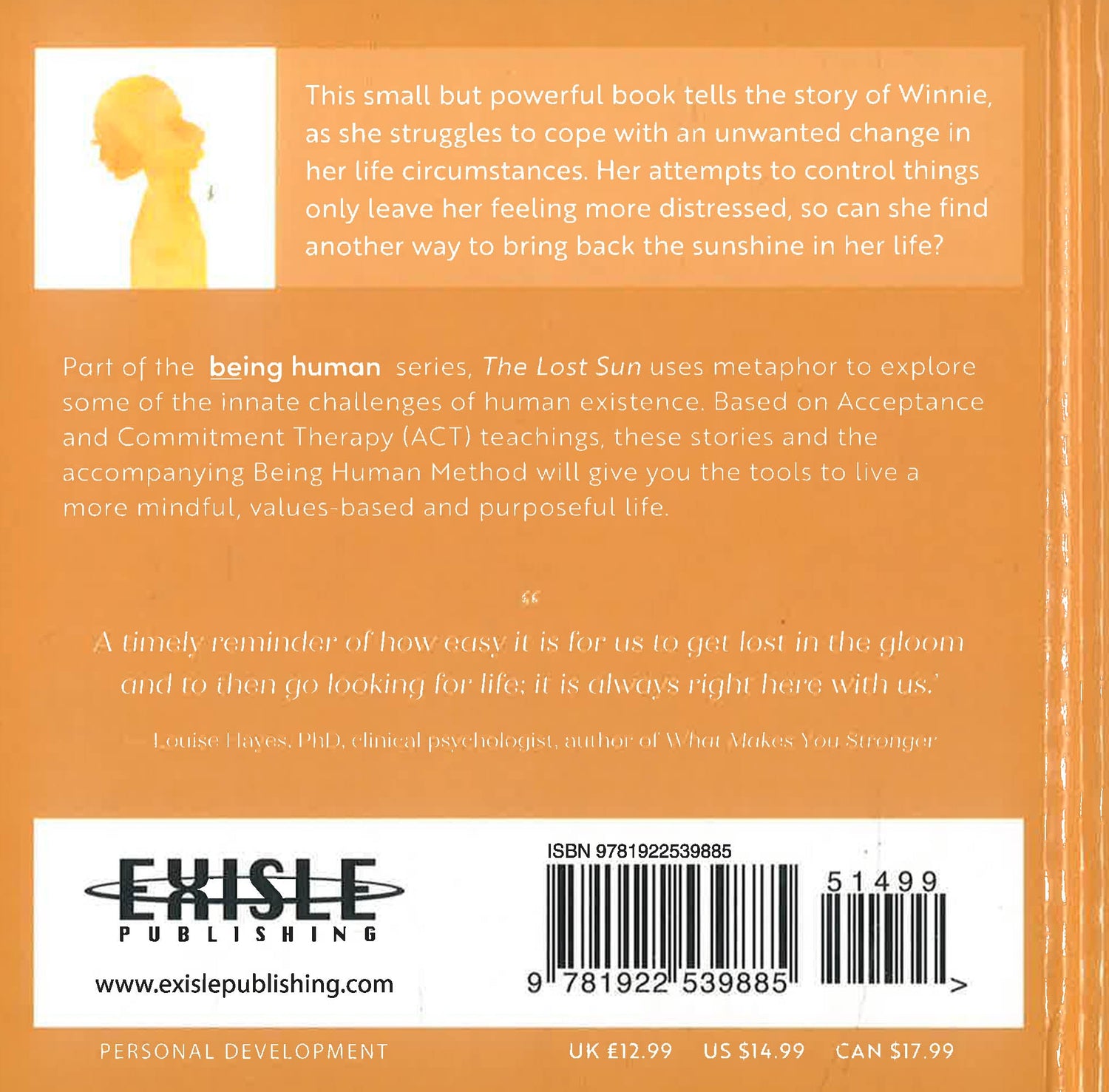 A profound and impactful lesson on coping with lifes unexpected changes, from a specialist in Acceptance and Commitment Therapy Winnie is experiencing psychological distress due to an unwelcome change in her life. When her attempts to control the situation only heighten her distress, she embarks on a journey to find her lost sunshine. Will she discover the true source of happiness and meaning in her life? > The Lost Sun explores the difficulty of dealing with change, something that affects us all as humans. The concise, insightful narrative uses metaphor to delve into the complex workings of human psychology making them accessible for all readers. The narrative concludes with a deep exploration of a unique teaching, and a practical process for readers to implement in their lives. The result is an essential guide for leading a confident and fulfilling life amidst adversities The Being Human Series >This is one of four books in the Being Human series, a self-help collection that dives into the complexities of the human condition. Based on Acceptance and Commitment Therapy teachings, the stories focus on the importance of developing psychological resilience to help us deal with lifes challenges. Each book stands alone but, when read together, offers a thorough understanding of our shared human experience