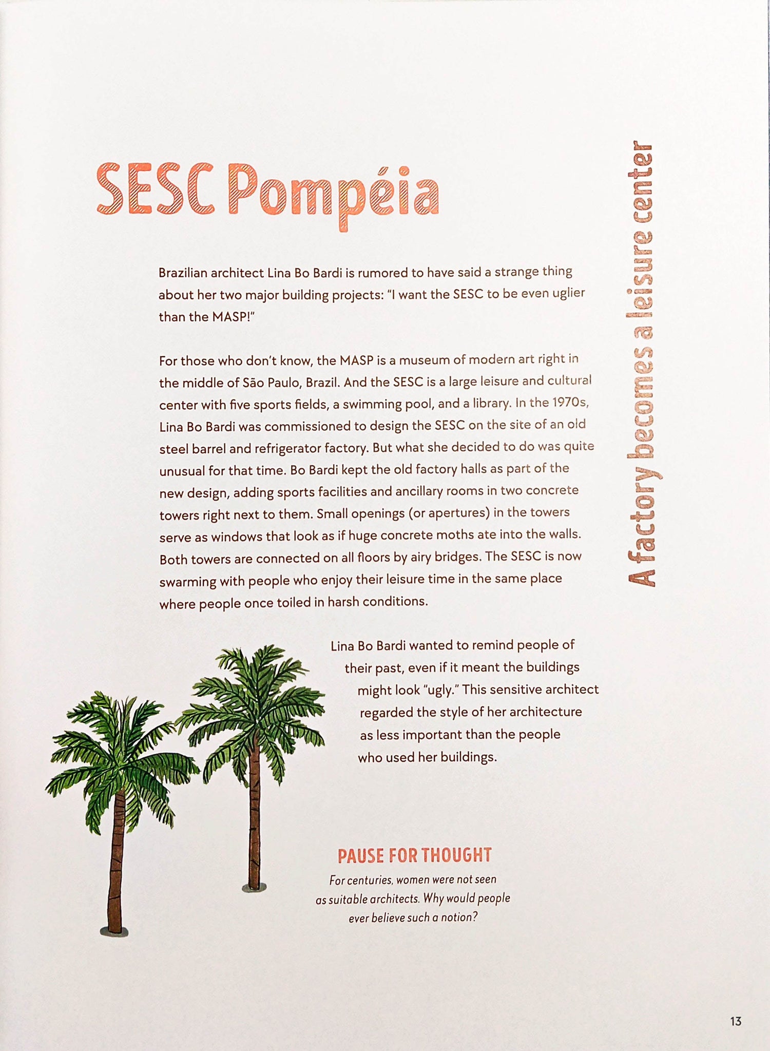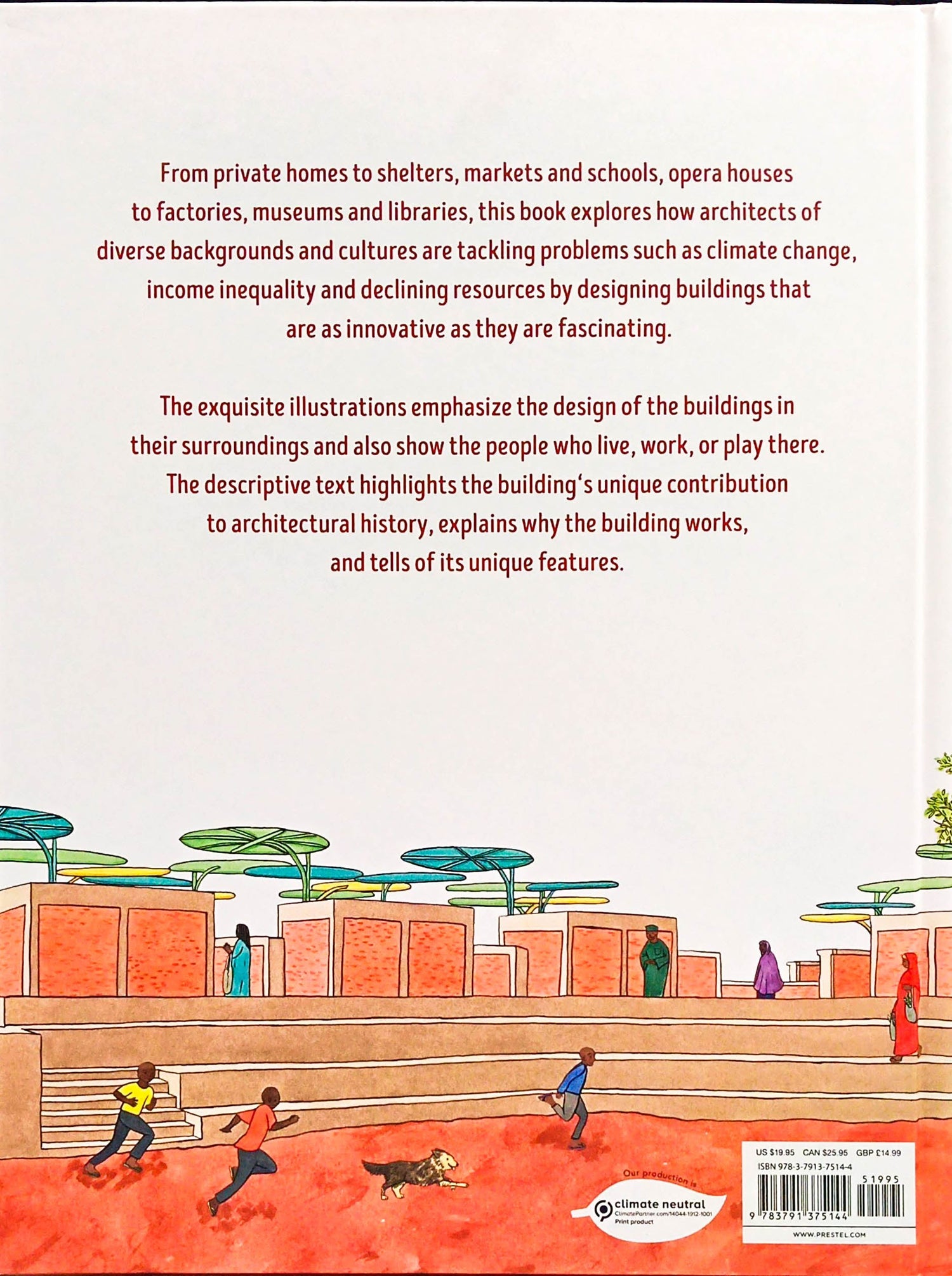 Although popular culture and classrooms are filled with references to classic and iconic buildings such as the Parthenon, the Cathedral of Notre Dame, and the Great Pyramids, there are equally valuable lessons to be learned from modern architecture, and especially from buildings situated in the Global South and among underrepresented populations. This beautifully illustrated book investigates how contemporary architects from a variety of cultures are addressing issues of climate change, income inequality, and limited resources by designing buildings that are as innovative as they are beautiful. Each building is presented in a double-page spread featuring Pamela Baron’s exquisitely detailed illustrations that highlight the design, natural surroundings, and the people who live, work, or play there. Annette Roeder’s pitch-perfect text outlines the structure’s unique contribution to the field of architecture, and invites readers to wonder aloud why the building works and to find out more about it. A perfect stepping stone for designers in the making, this book also teaches kids how architecture can help the people it shelters and the planet on which it is built.