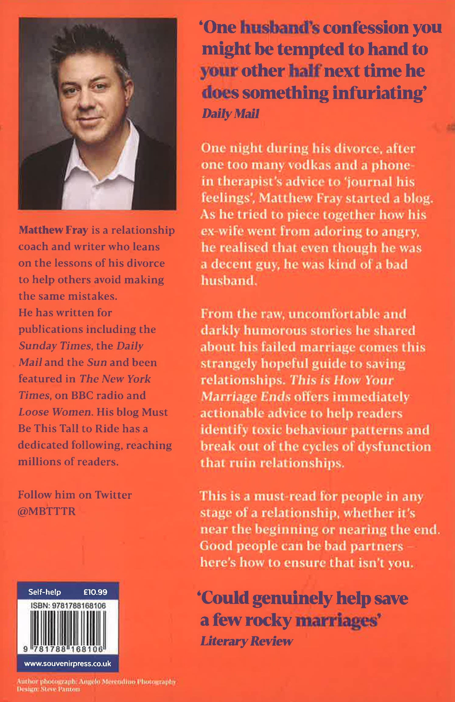 'The man who coaches husbands on how to avoid divorce' The New York Times 'One husband's confession you might be tempted to hand to your other half next time he does something infuriating' Daily Mail 'Could genuinely help save a few rocky marriages' Literary Review One night during his divorce, after one too many vodkas and a phone-in-therapist's advice to 'journal his feelings,' Matthew Fray started a blog. As he tried to piece together how his ex-wife went from adoring to angry he realised that even though he was a decent guy, he was kind of a bad husband. From the raw, uncomfortable and darkly humorous stories he shared about the lessons he's learned from his failed marriage comes this strangely hopeful guide to saving relationships. This is How Your Marriage Ends offers immediately actionable advice to help readers identify toxic behaviour patterns in their own lives, and break them out of the cycles of dysfunction that ruin relationships. This is a must-read for people in any stage of a relationship, whether it's near the beginning or nearing the end. Good people can be bad partners - here's how to ensure that isn't you.