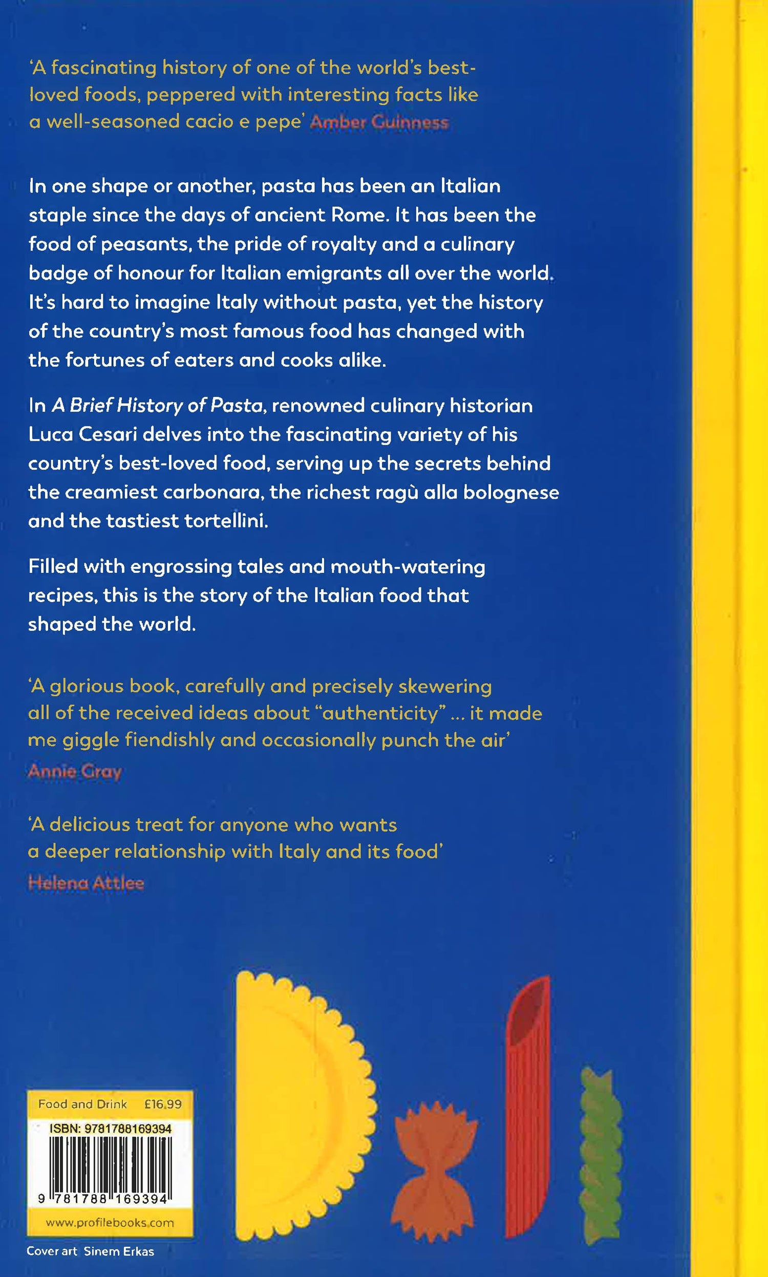 A Waterstones 'Best Books of 2022: Food and Drink' A Times Food and Drink Book of the Year 2022 and a Spectator Cook Book of the Year 2022 In one shape or another, pasta has been an Italian staple since the days of ancient Rome. It has been the food of peasants, the pride of royalty and a culinary badge of honour for Italian emigrants all over the world. It's hard to imagine Italy without pasta, yet the history of the country's most famous food has changed with the fortunes of eaters and cooks alike. In A Brief History of Pasta, discover the humble origins of fettuccine Alfredo that lie in a back-street trattoria in Rome, how Genovese sauce became a Neapolitan staple and what conveyor belts have to do with serving spaghetti. Meet the people who have shaped pasta's history, from the traders who brought pesto to the world to the celebrity chef who sparked national outrage by adding an unpeeled garlic clove to his recipe for amatriciana sauce. Renowned culinary historian Luca Cesari delves into the fascinating variety of his country's best-loved food, serving up the secrets behind the creamiest carbonara, the richest ragù alla Bolognese and the tastiest tortellini.