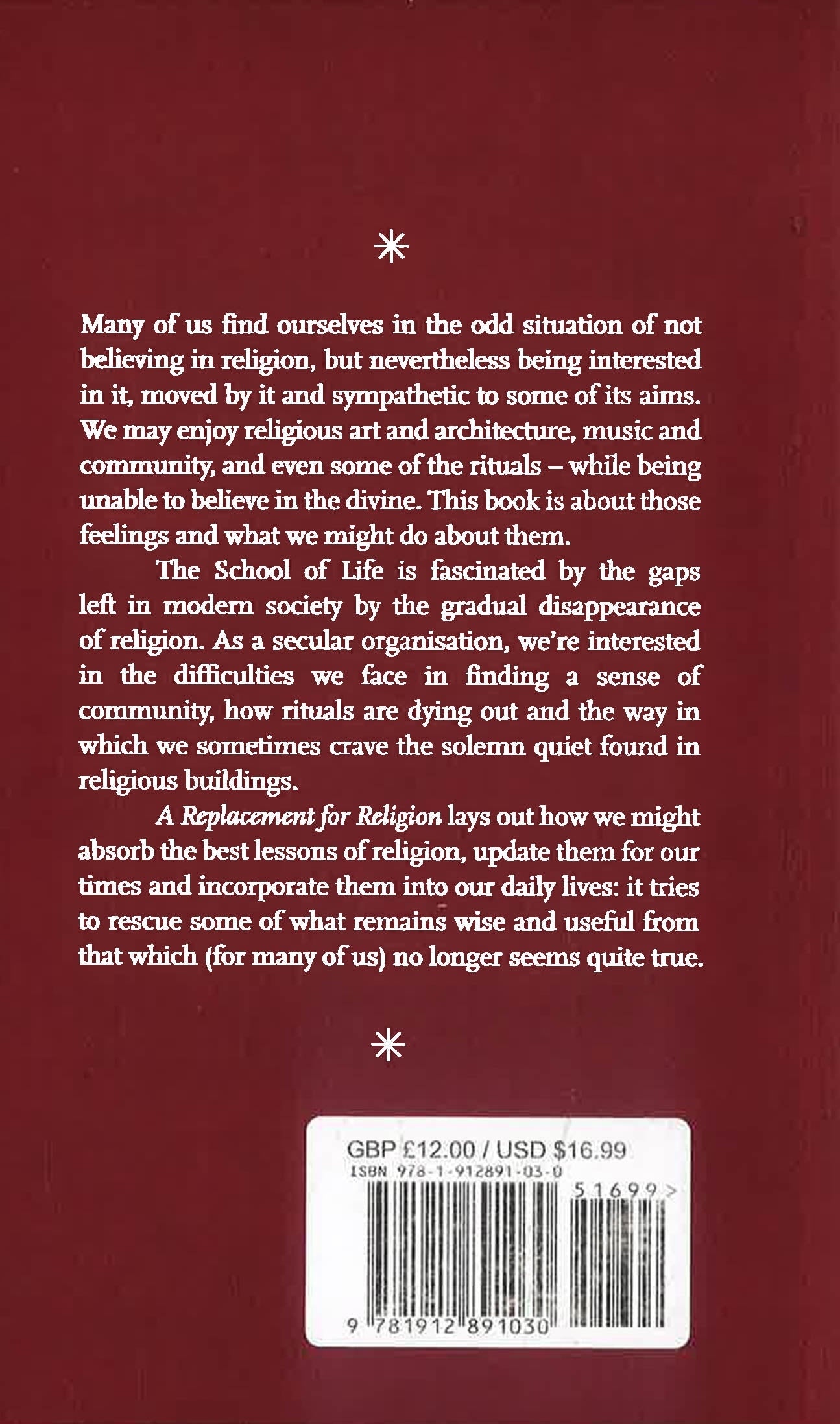 Whether or not we believe in religion, many of us feel drawn toward a spiritual life. Maybe we love cathedral architecture, Mozart's Requiem, or Buddhist literature.The School of Life is a secular organization fascinated by the gaps left in modern society by the gradual disappearance of religion. They're interested in how hard it is to find a sense of community, why rituals are dying out, and when we crave the solemn quiet only found in religious buildings. This book lays out how we might absorb the best lessons of religion, update them for our times and incorporate them into our daily lives and societies-without taking on the theological or doctrinal elements.
