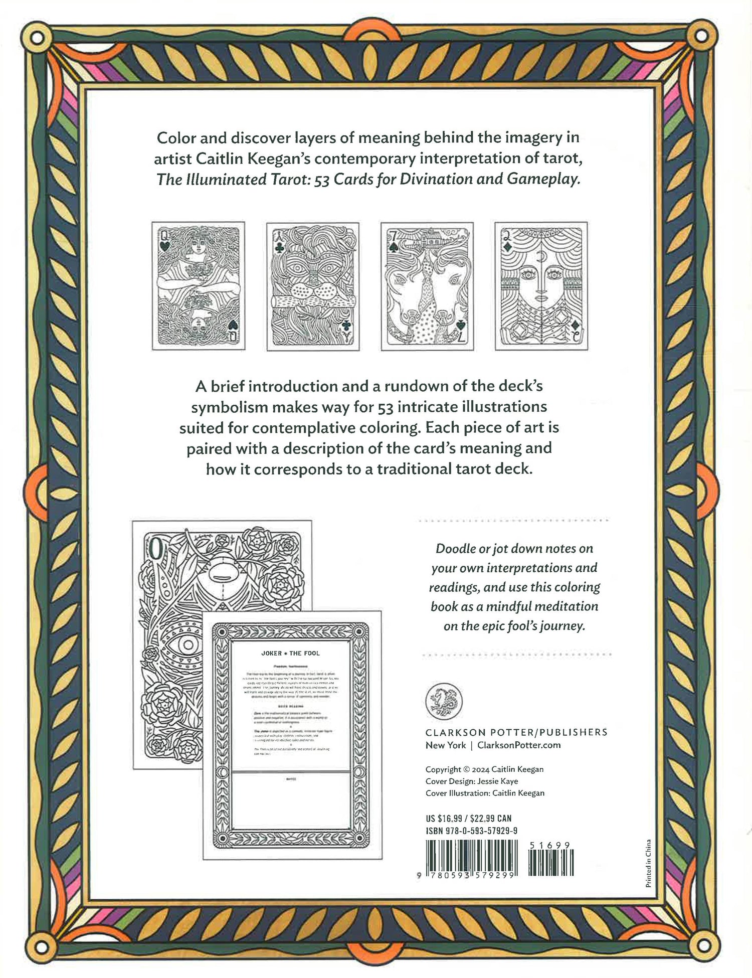 Step into the world of The Illuminated Tarot, an illustrated celebration of the varied history of tarot and its many forms. This coloring book brings artist Caitlin Keegan's bestselling tarot deck to new life, featuring black and white line drawings of each of the cards in the 53-card deck. The sturdy pages can handle colored pencils, crayons, or markers, and feature insight into the history of tarot, cartomancy, and playing cards throughout.