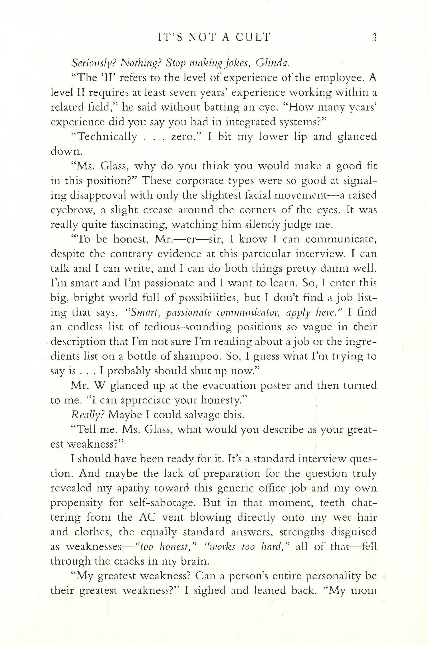 Glinda Glass is truly trying her best. After dropping out of her graduate school program, she moves back to her childhood home with her mom―who has not only joined a cult, the Starlight Pioneer Society, but has also become enraptured by its charismatic and menacing leader, Arlon. Meanwhile, Glinda spends her days working in the Drench-the-Wench dunk booth at the local Renaissance fair with her only friend Troy―who may be falling in love with her.
