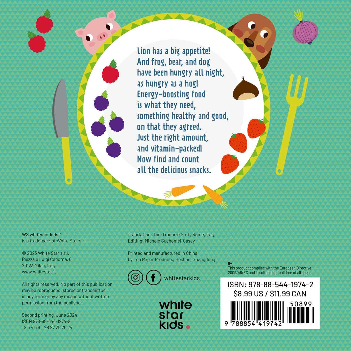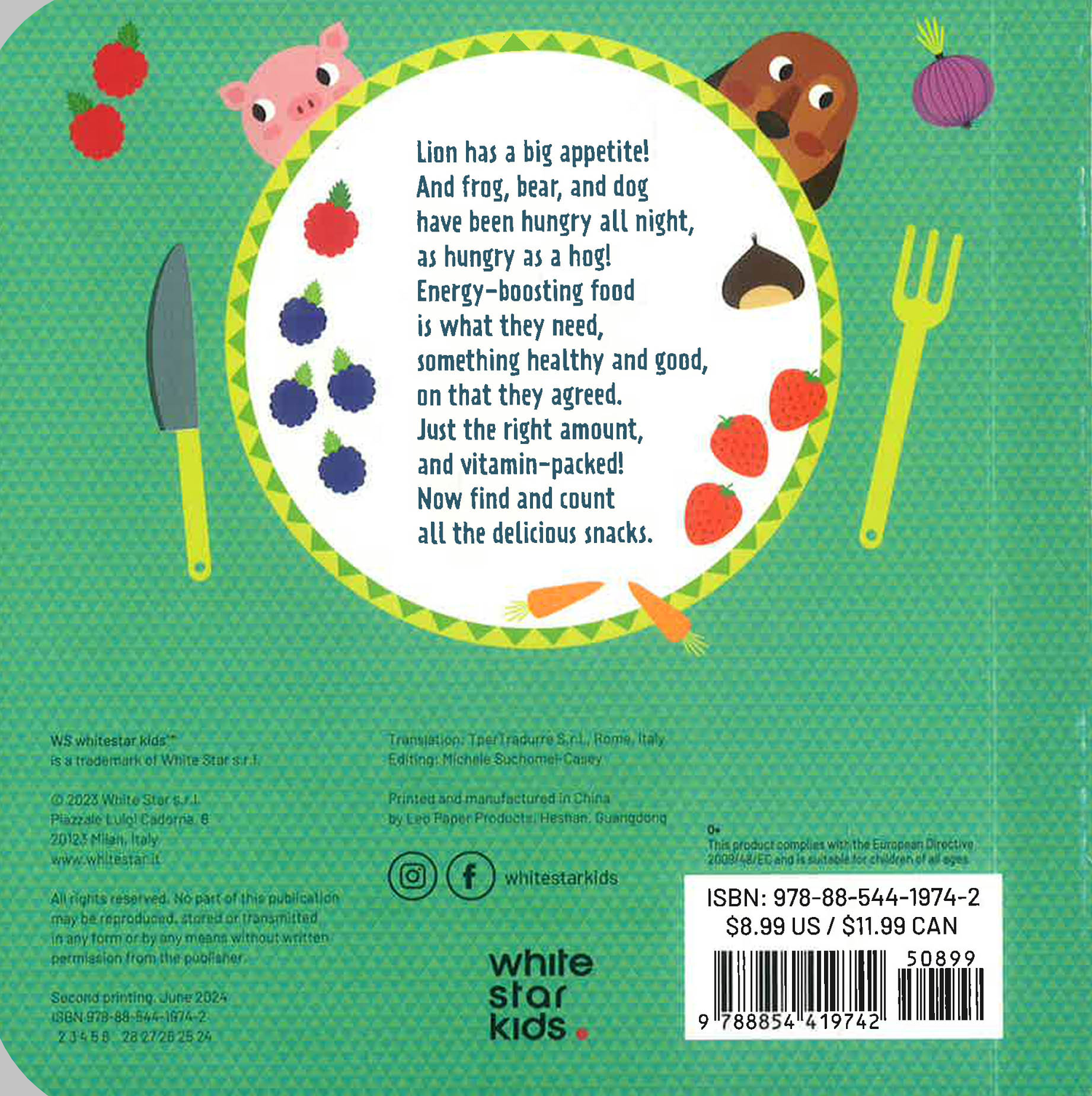 Learn through play! An interactive book teaching children the fun of counting. Each pages features a new fun animal. Slide the page in-and-out to see what and how much the friendly creature is eating. The book works upwards in sequential order from one to ten. Watch in awe as your child learns to count by playing with just one book! Ages: 3 plus