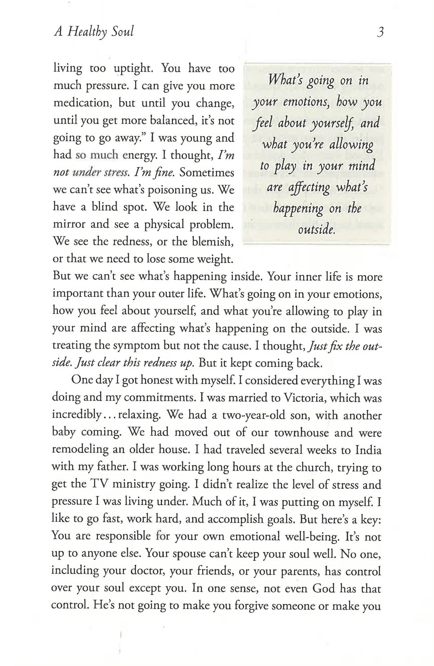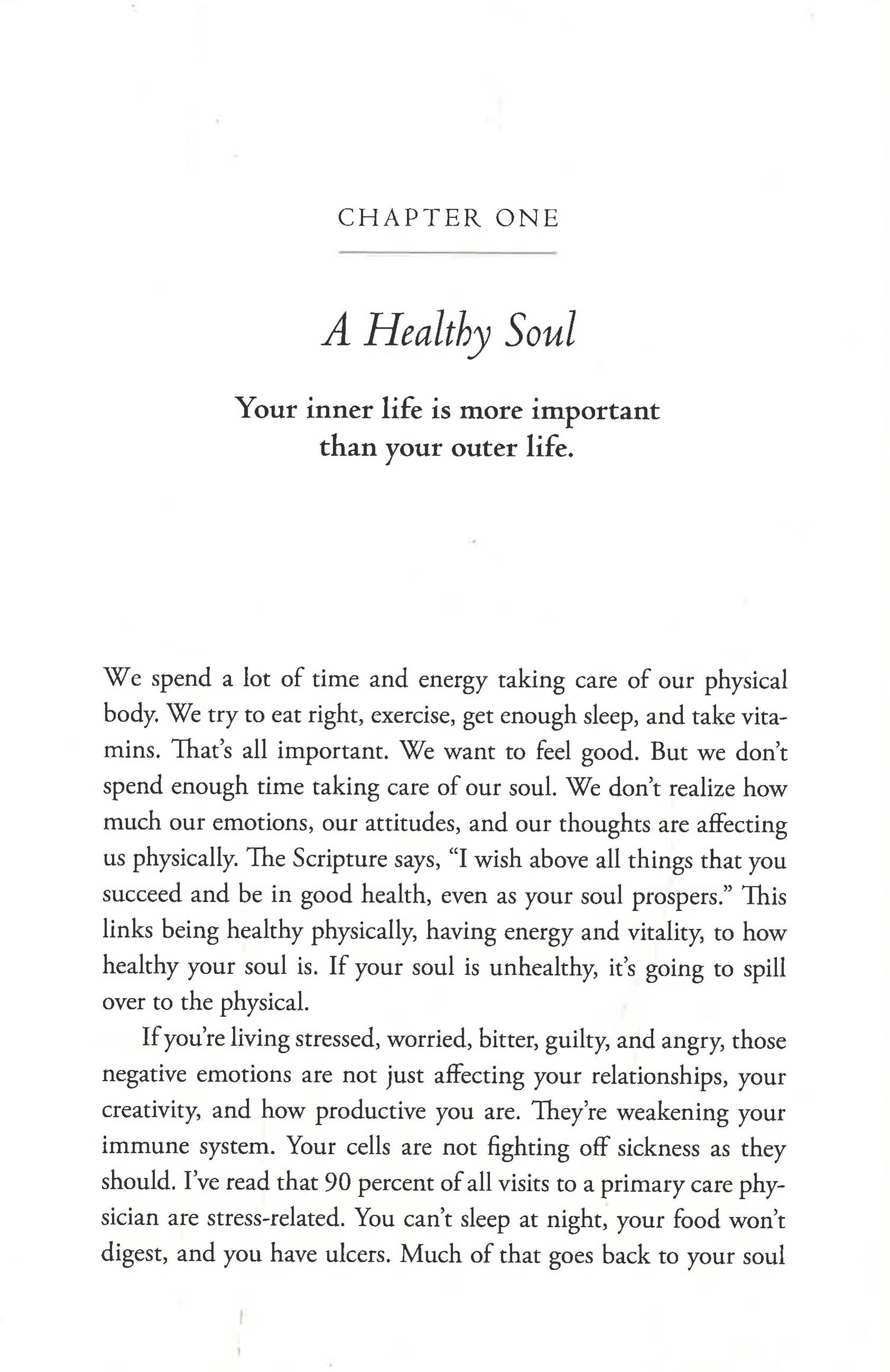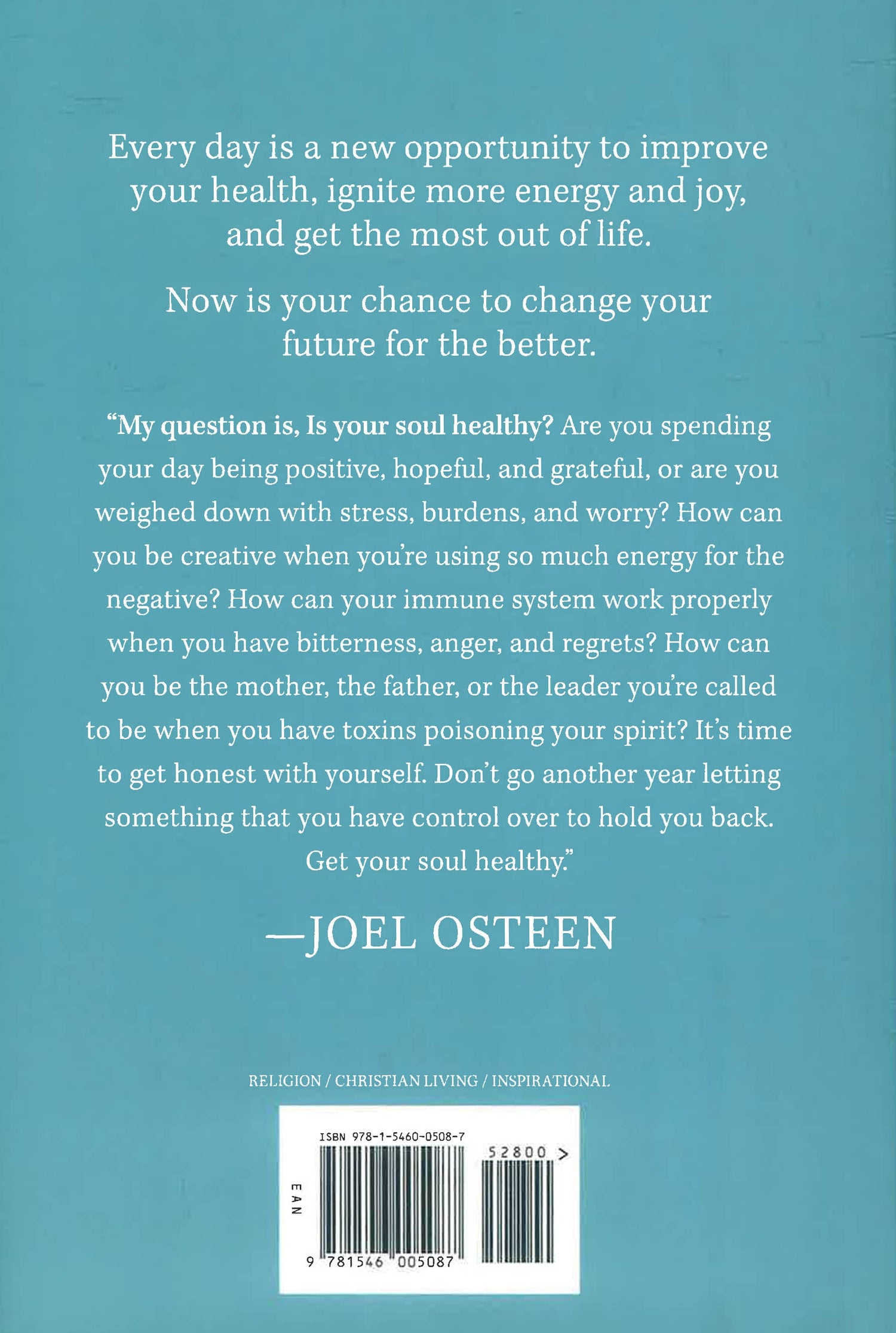 In 15 Ways to Live Longer and Healthier, Joel Osteen, with his trademark wisdom and encouragement, helps you to discover greater success, stronger relationships, tame stress, and find real happiness. He shows that the key to good health, longevity, and abundance is to keep your soul healthy by focusing on your attitude, your thoughts, and your emotional well-being. In this book, he shows you how to: