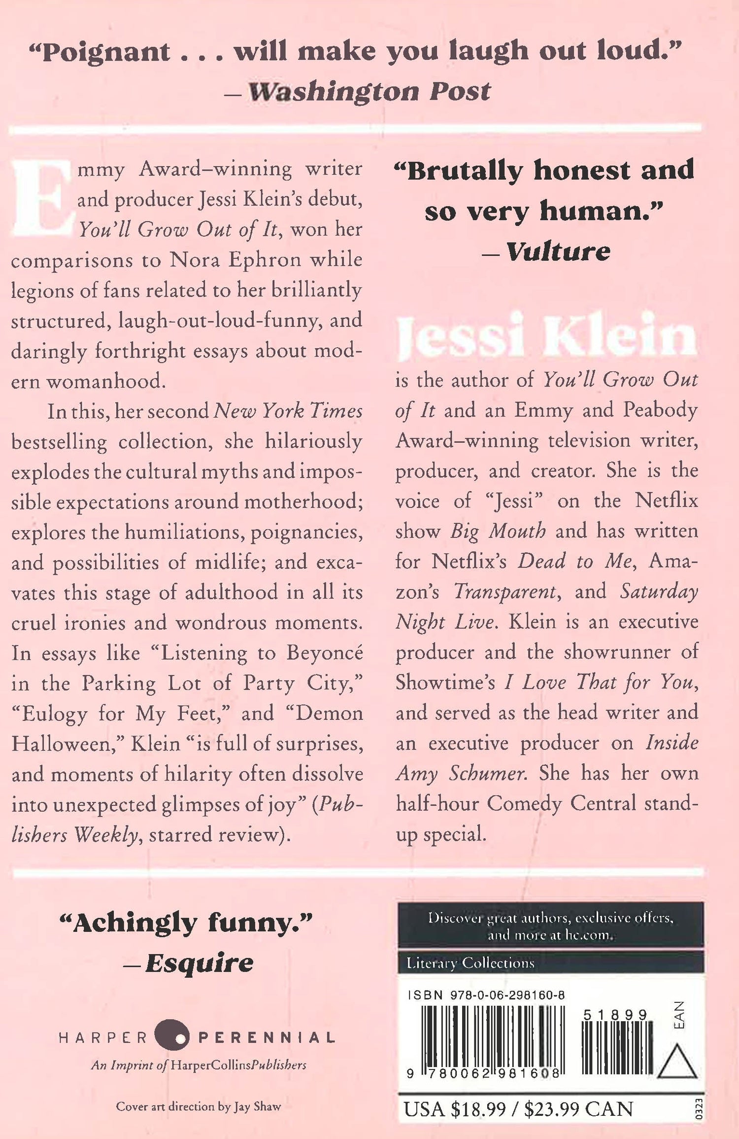 In New York Times bestselling author and Emmy Award-winning writer and producer Jessi Klein’s second collection, she hilariously explodes the cultural myths and impossible expectations around motherhood and explore the humiliations, poignancies, and possibilities of midlife.