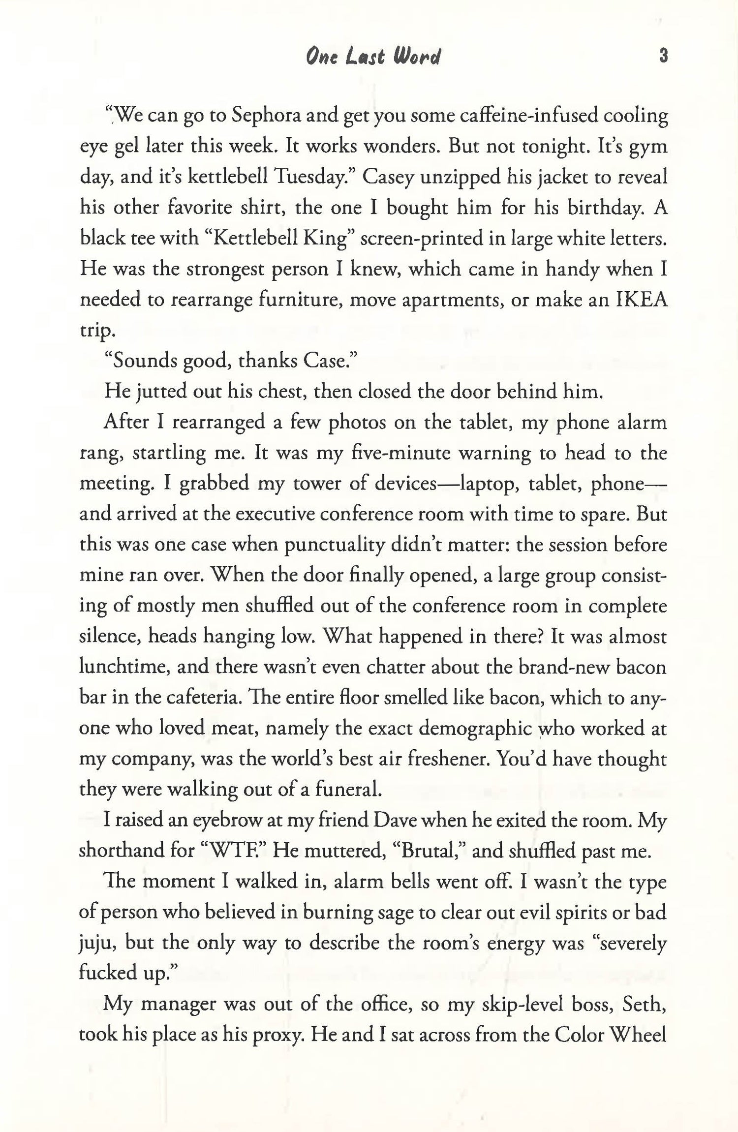 A pitch-perfect homage for fans of Annabel Monaghan, Alisha Rai, and Jenny Han, One Last Word is an empowering, laugh-out-loud story about a woman who learns to speak up and fight for what she wants in life and love.