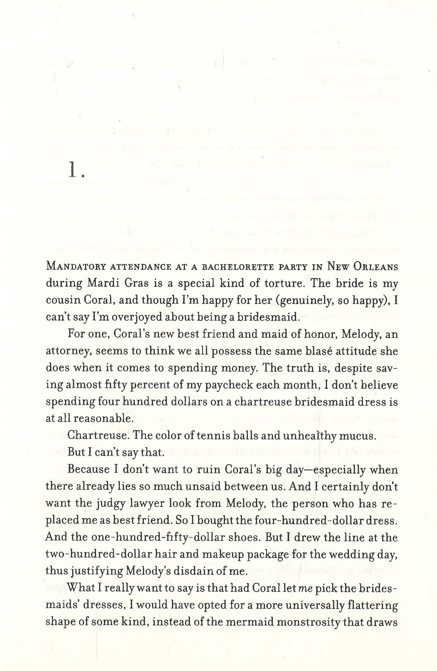 A wretched maid of honor. A hangover from hell. Raucous Mardi Gras crowds. There isn't much Serena Khan is enjoying about this four-day New Orleans destination bachelorette party for her semi-estranged cousin, the bride-to-be.
