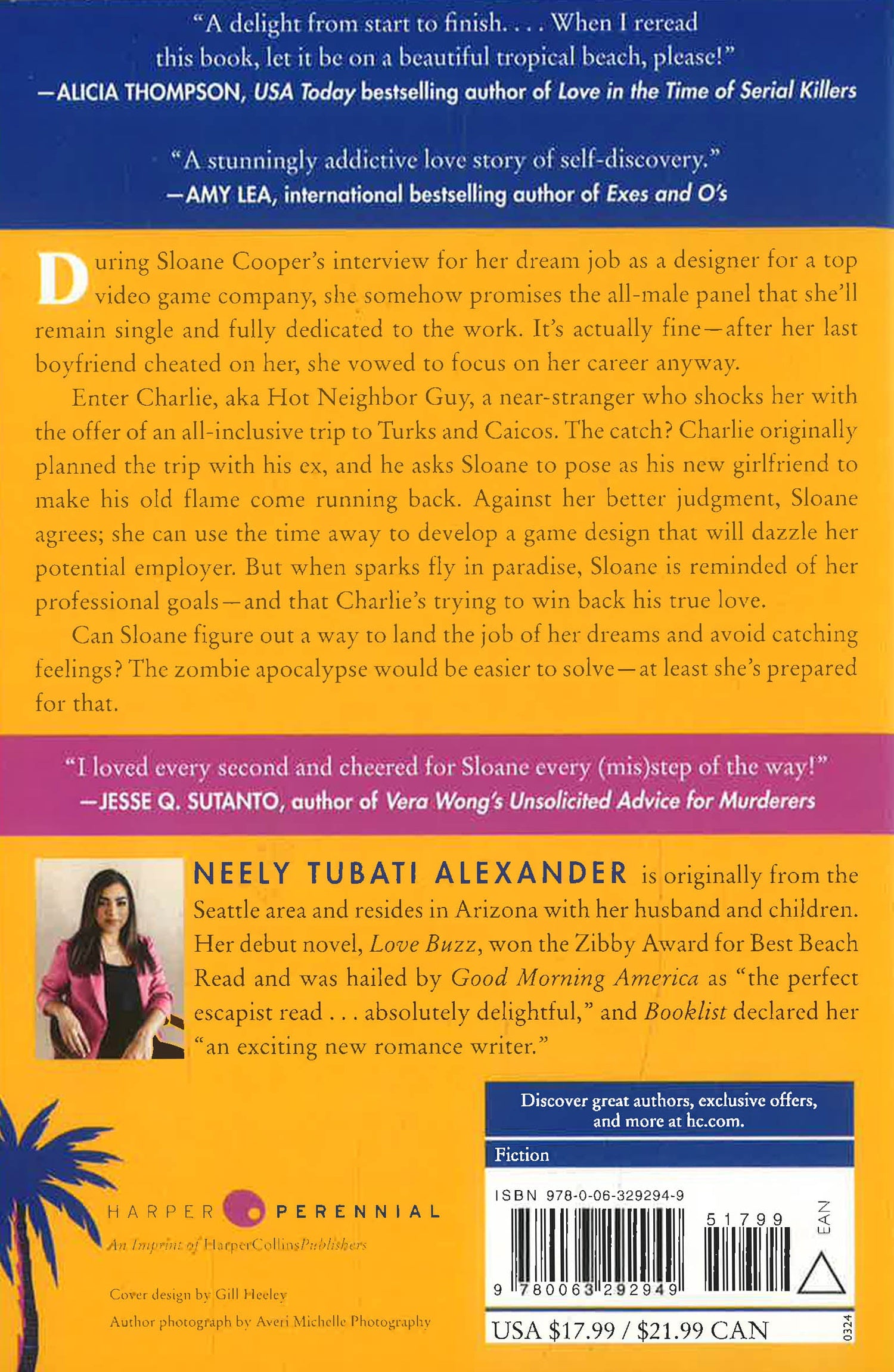 Enter Charlie, aka Hot Neighbor Guy, a near-stranger who shocks her with the offer of an all-inclusive trip to a Turks and Caicos resort. The catch? Charlie originally planned the trip with his ex, and asks Sloane to pose as his new girlfriend to make his old flame come running back. Against her better judgment, Sloane says yes; she can use the time away to develop a game design that will dazzle the Catapult team and get her a job offer.