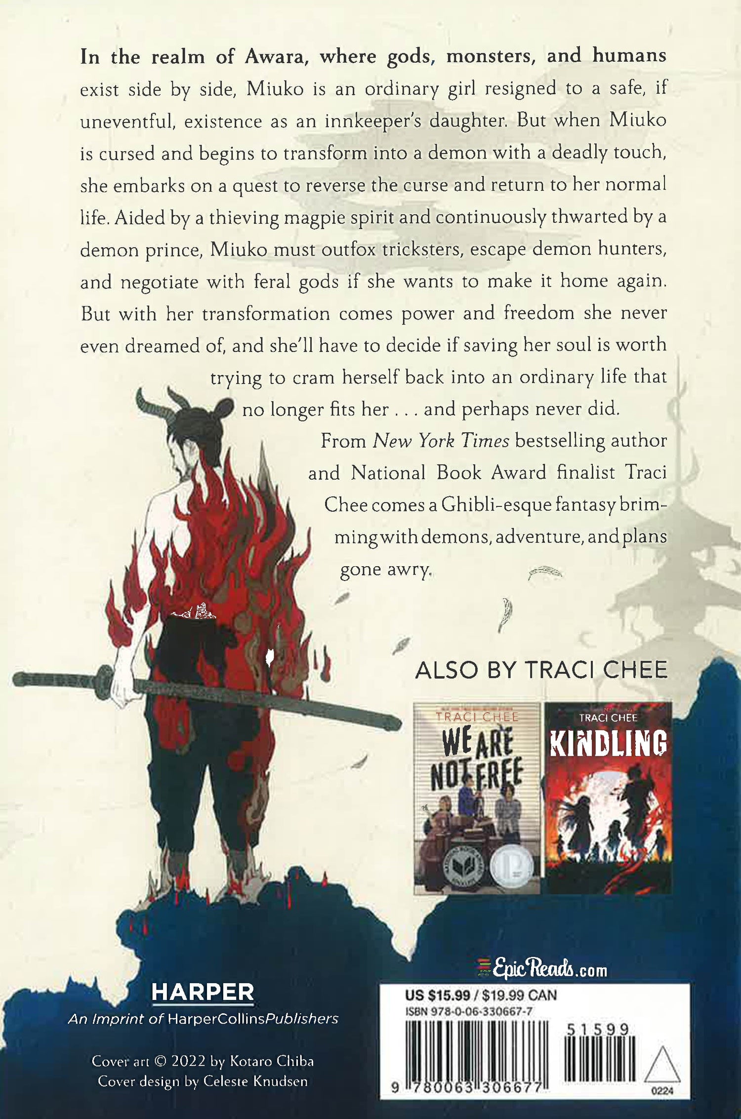 But when Miuko is cursed and begins to transform into a demon with a deadly touch, she embarks on a quest to reverse the curse and return to her normal life. Aided by a thieving magpie spirit and continuously thwarted by a demon prince, Miuko must outfox tricksters, escape demon hunters, and negotiate with feral gods if she wants to make it home again.