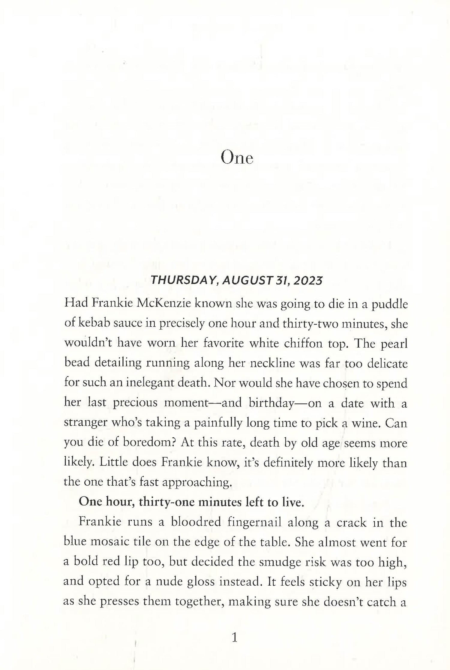 Despite living firmly in her comfort zone, Frankie McKenzie feels unsettled. She can't help feeling something's missing. Is it a home to call her own? Travel? A more rewarding job? A relationship? Before she can work it out, she dies in a freak kebab-related accident after what she sees as yet another dud of a first date.