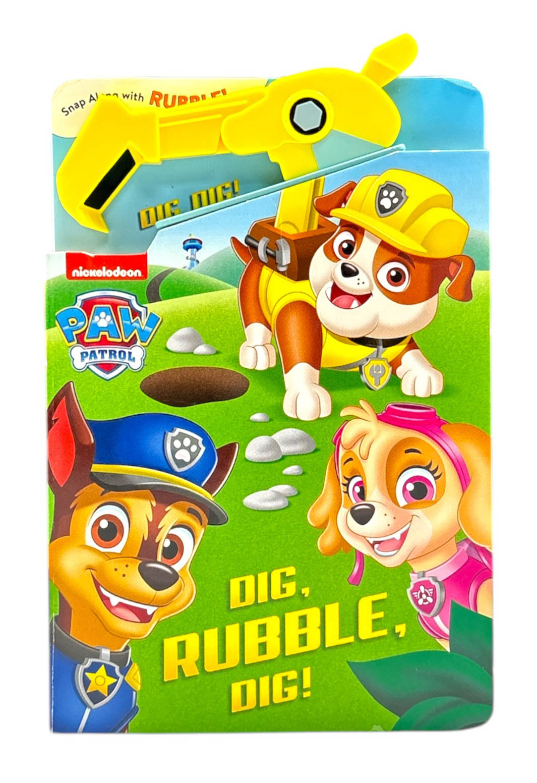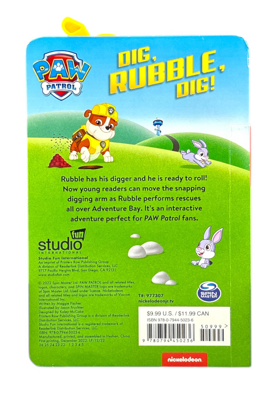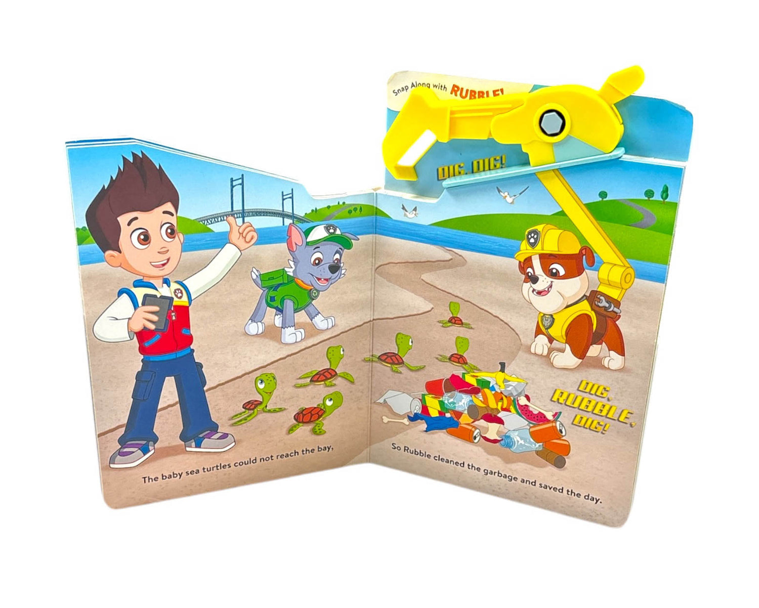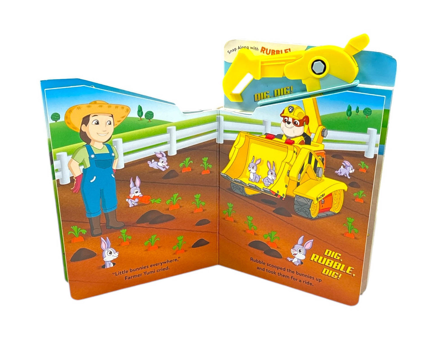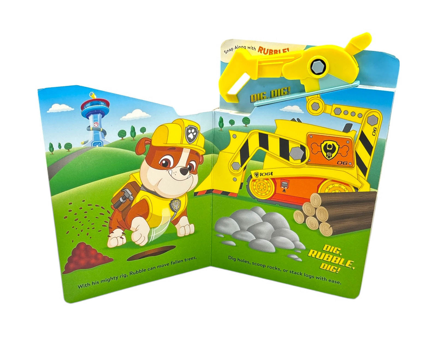 Rubble helps save the day in this interactive board book with a plastic snapping digging arm on top.