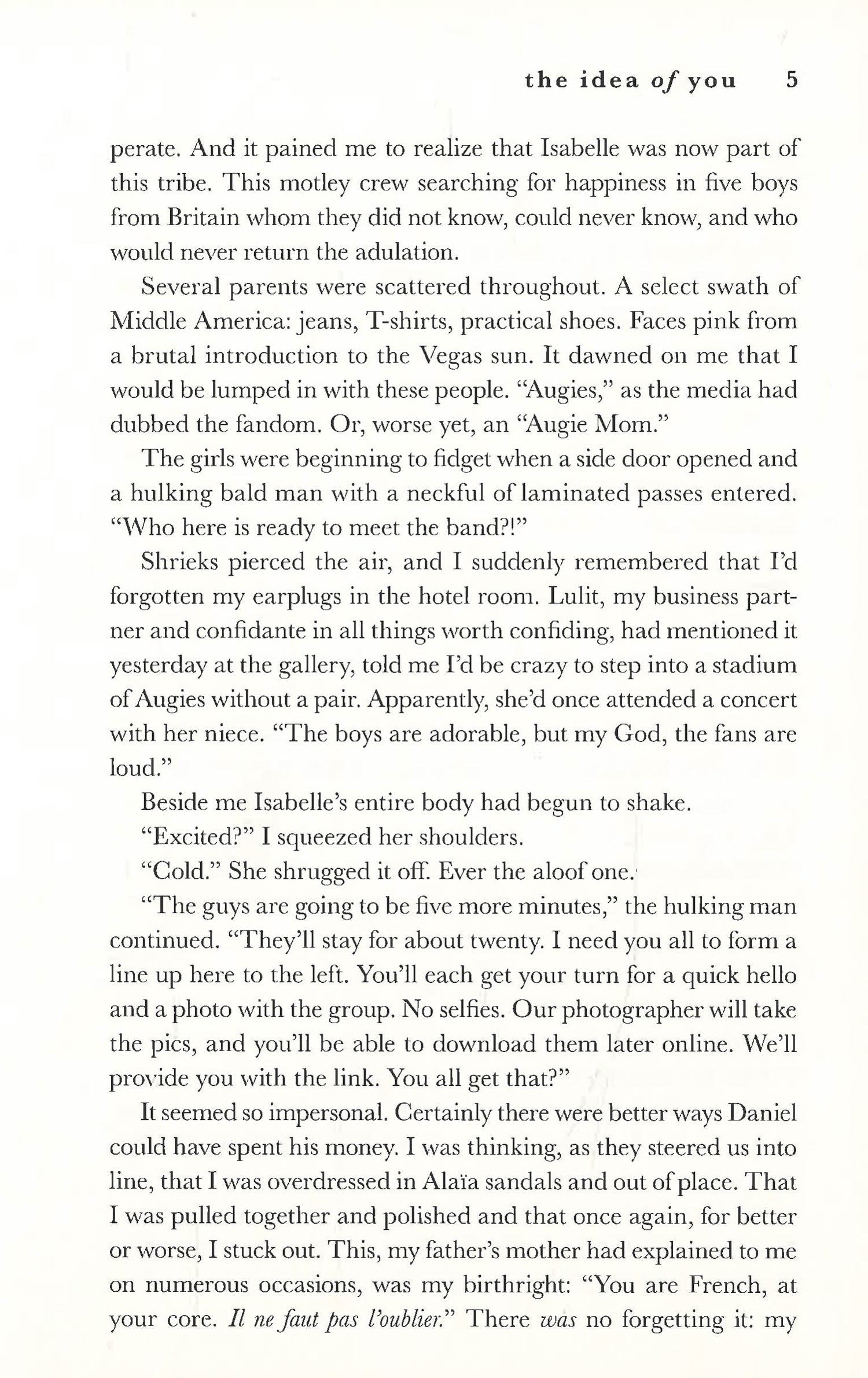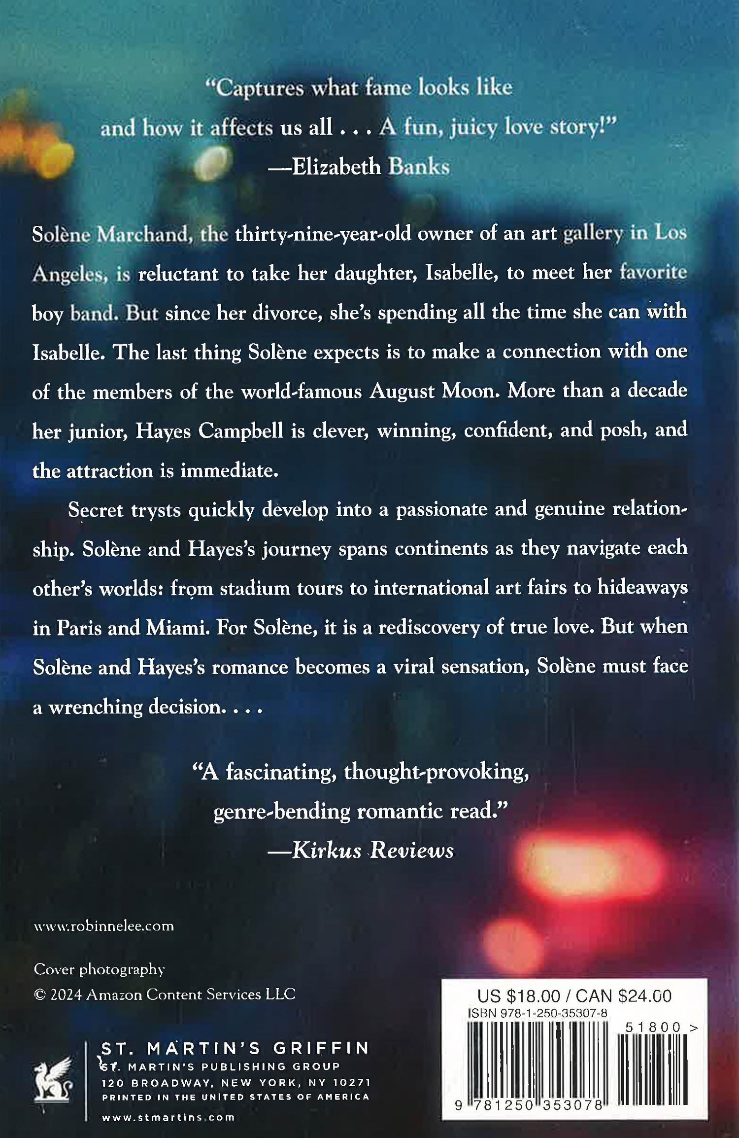 When Solène Marchand, the thirty-nine-year-old owner of a prestigious art gallery in Los Angeles, takes her daughter, Isabelle, to meet her favorite boy band, she does so reluctantly and at her ex-husband's request. The last thing she expects is to make a connection with one of the members of the world-famous August Moon. But Hayes Campbell is clever, winning, confident, and posh, and the attraction is immediate. That he is all of twenty years old further complicates things.