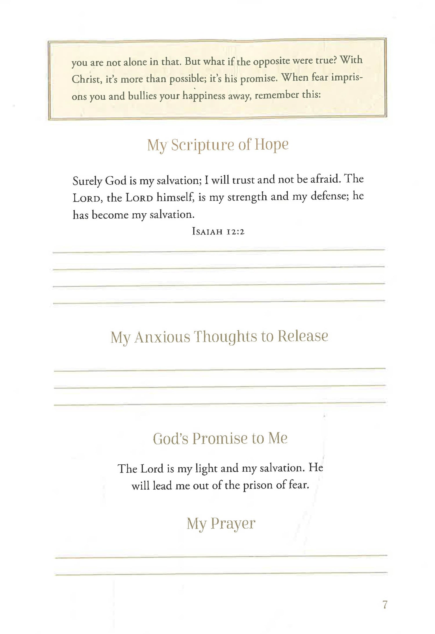 Calm Moments for Anxious Days includes Scripture, devotional thoughts, and practical tools to help you release your anxieties one by one, breath by breath, into the safe hands of a God who will never leave you. Each brief but powerful entry includes: