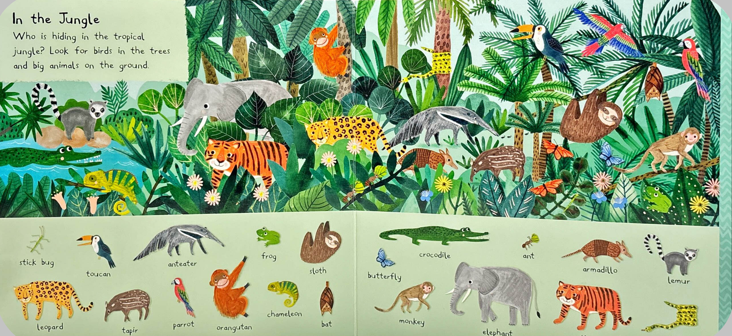 With five beautifully illustrated scenes from Rebecca Jones, each animal is located in their natural habitat, and with activities on colours, counting, animal babies and more, there is lots to do and talk about.