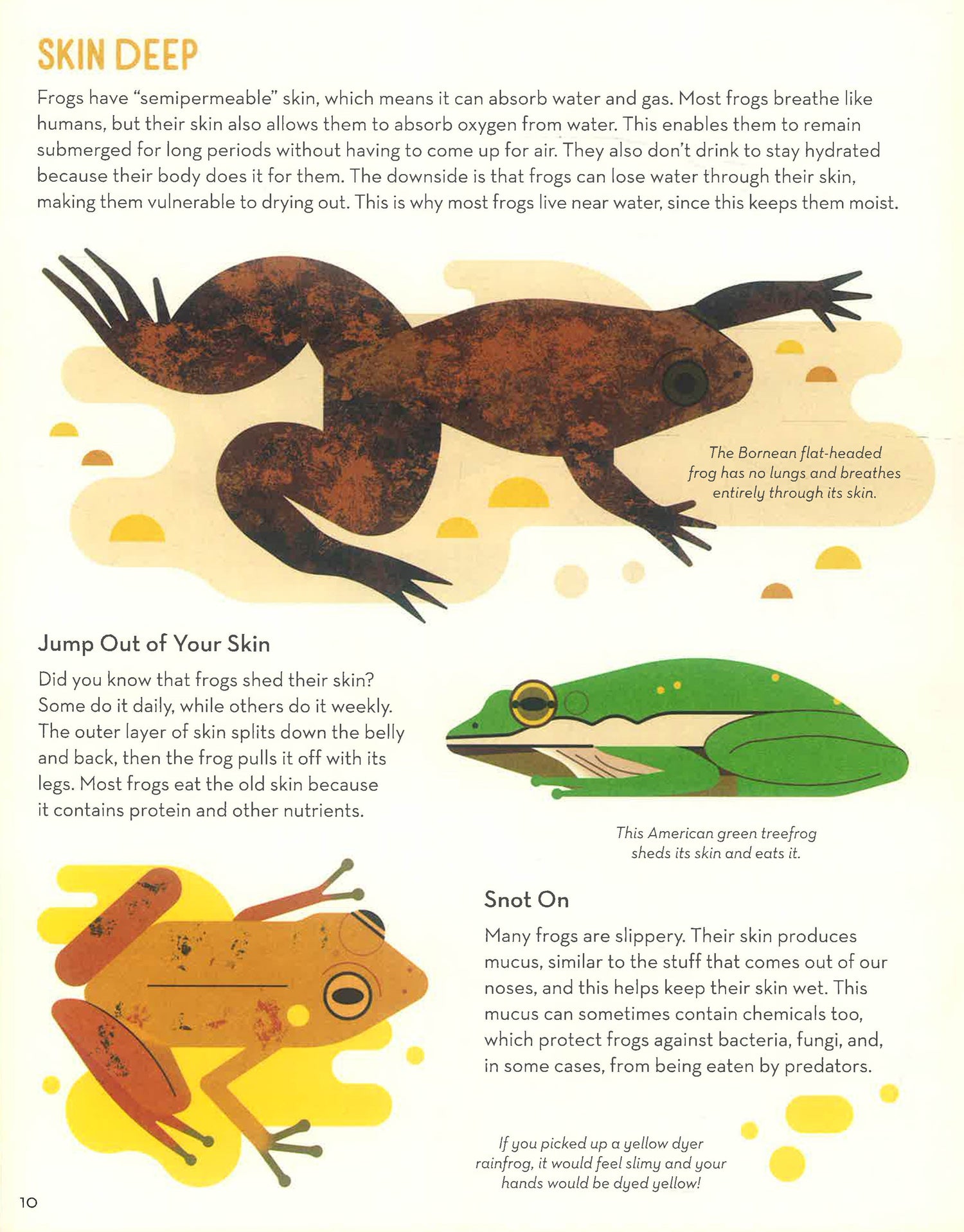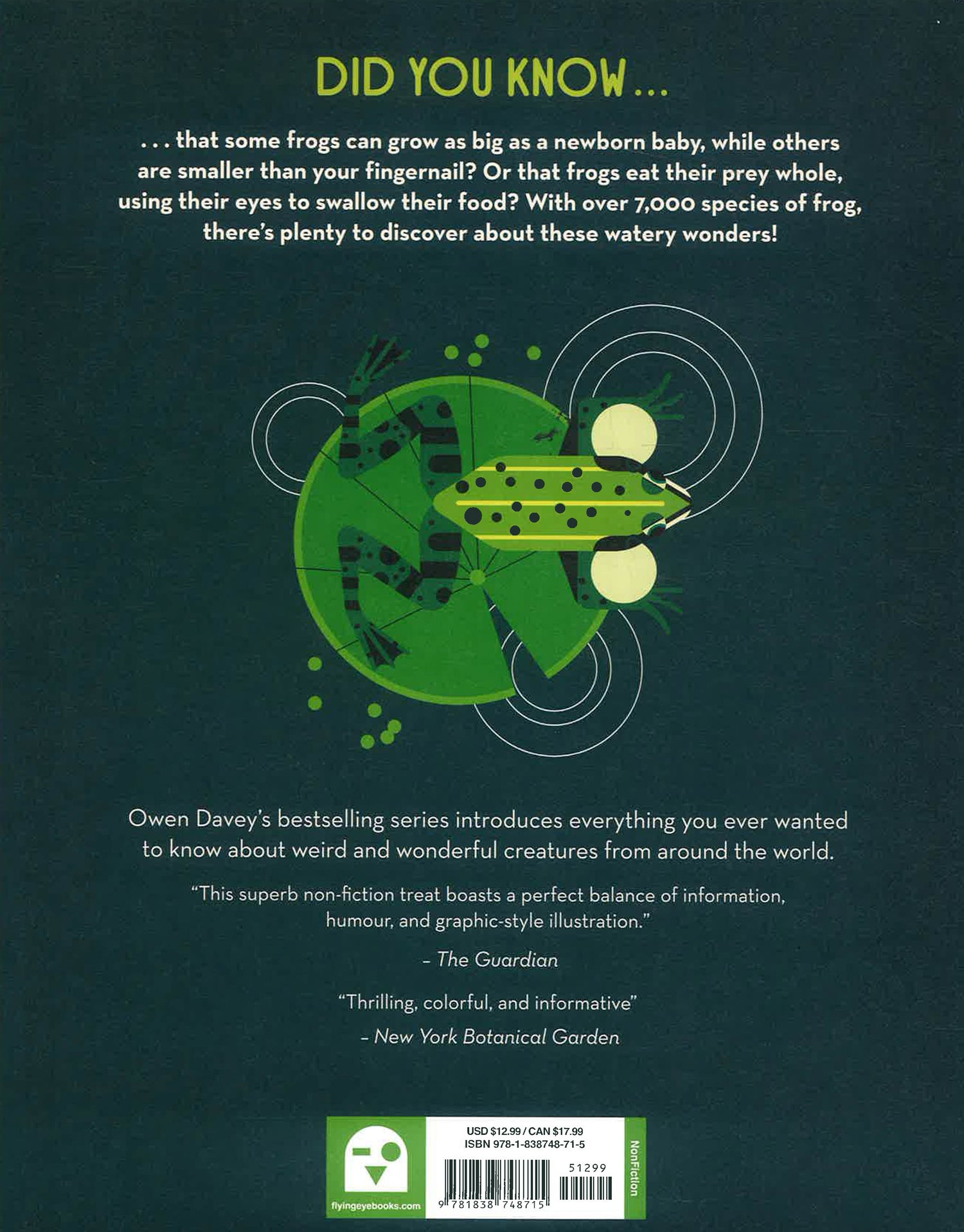 Did you know that there are over 4,000 known species of frog? Some are bigger than your dinner plate, while others are small enough to sit on your fingernail, and in between is about every color and size you can imagine! Leap into this fascinating illustrated guide to the most diverse amphibians in the world, from the lumbering common toad to the beautiful but deadly poison dart frog