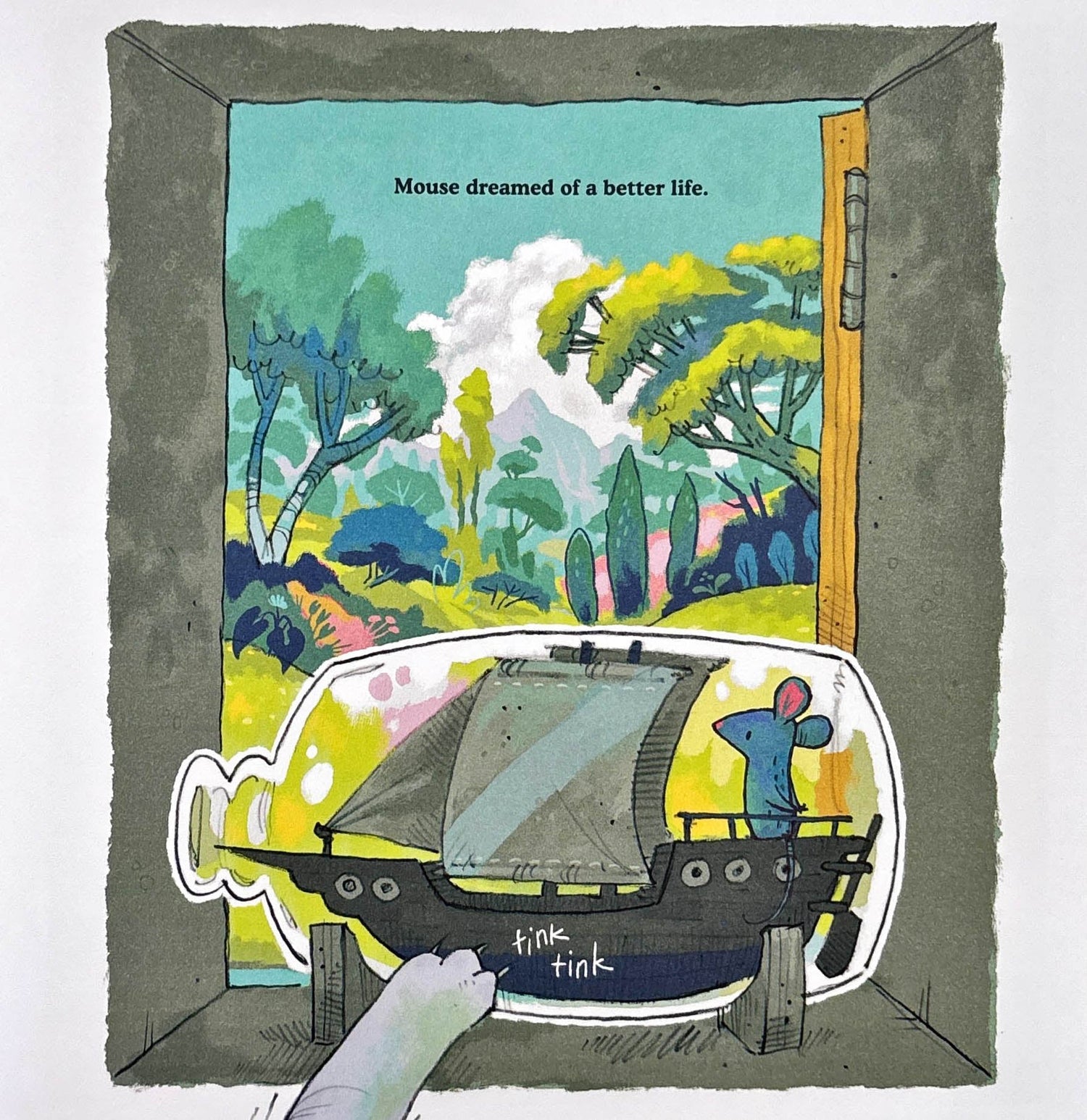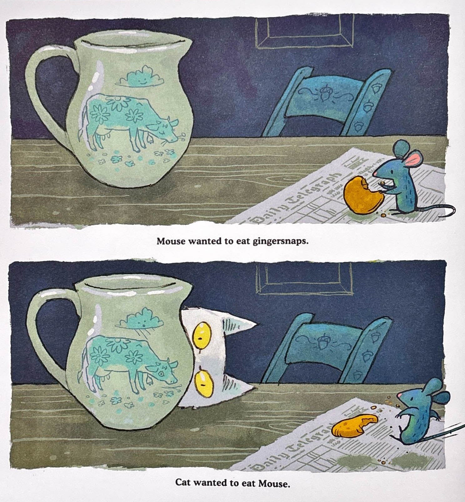 All Mouse wants to do is eat gingersnaps, lie in the sun, and enjoy her ship in a bottle. All Cat wants to do is eat Mouse. This is a problem.