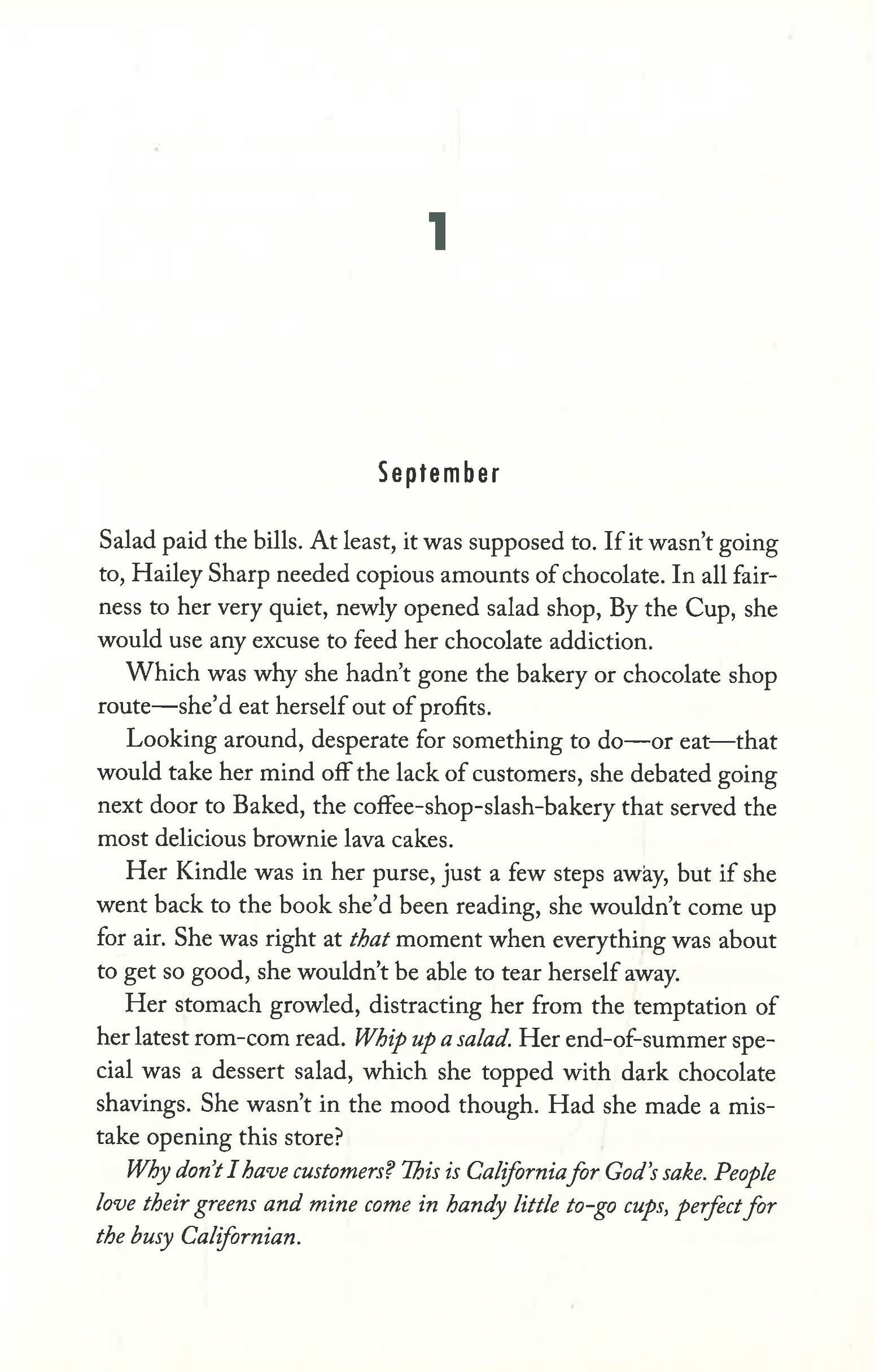 Hailey Sharp has a one-track mind. Get By the Cup salad shop off the ground. Do literally everything possible to make it a success. Repeat. With a head full of entrepreneurial ideas and a bad ex in her rearview, her one and only focus is living life the way she wants to. No distractions.