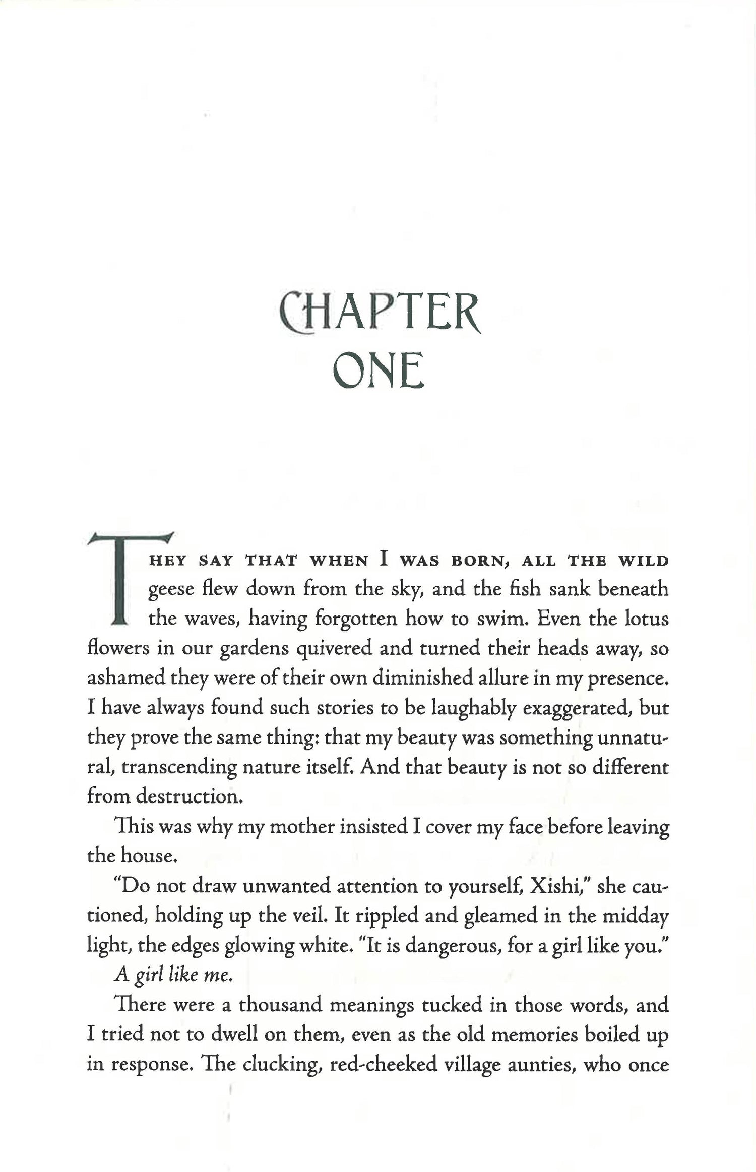 Xishi’s beauty is seen as a blessing to the villagers of Yue―convinced that the best fate for a girl is to marry well and support her family. When Xishi draws the attention of the famous young military advisor, Fanli, he presents her with a rare opportunity: to use her beauty as a weapon. One that could topple the rival neighboring kingdom of Wu, improve the lives of her people, and avenge her sister’s murder. All she has to do is infiltrate the enemy palace as a spy, seduce their immoral king, and weaken them from within.