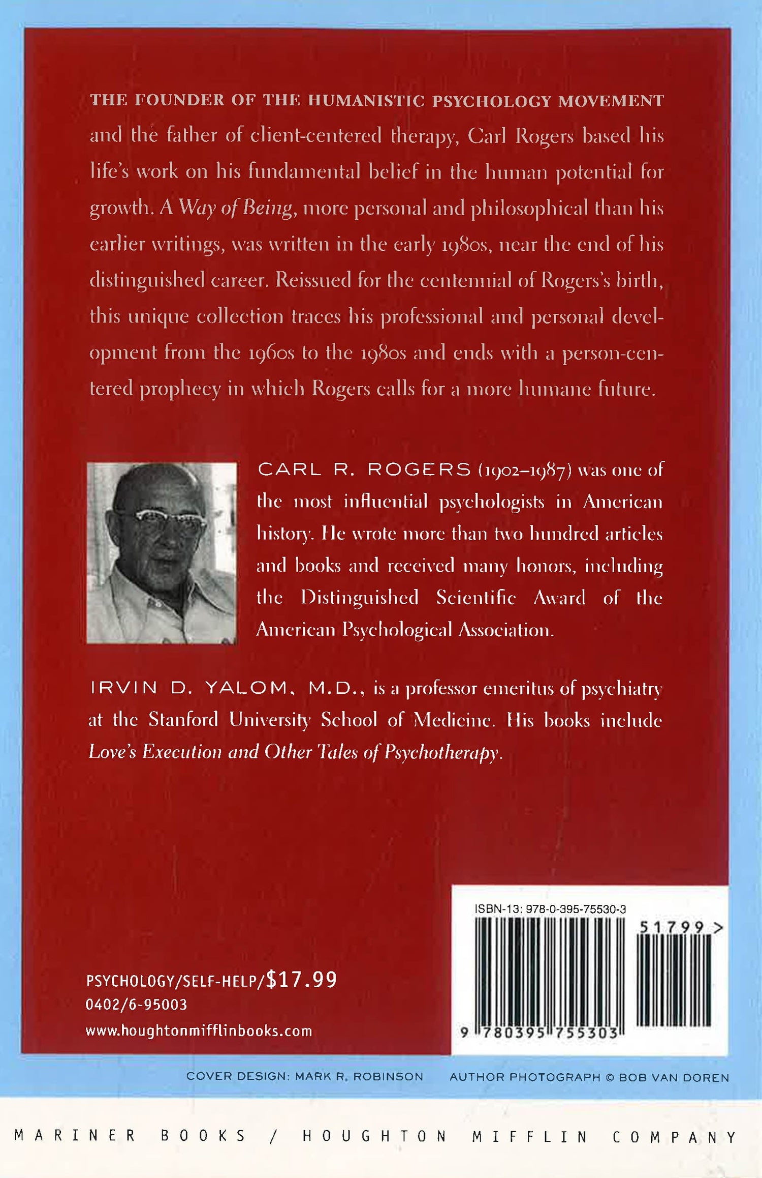 A Way of Being was written in the early 1980s, near the end of Rogers' career, and serves as a coda to his classic On Becoming a Person. More philosophical than his earlier writings, it traces his professional and personal development. Rogers concludes by predicting a more humane future.