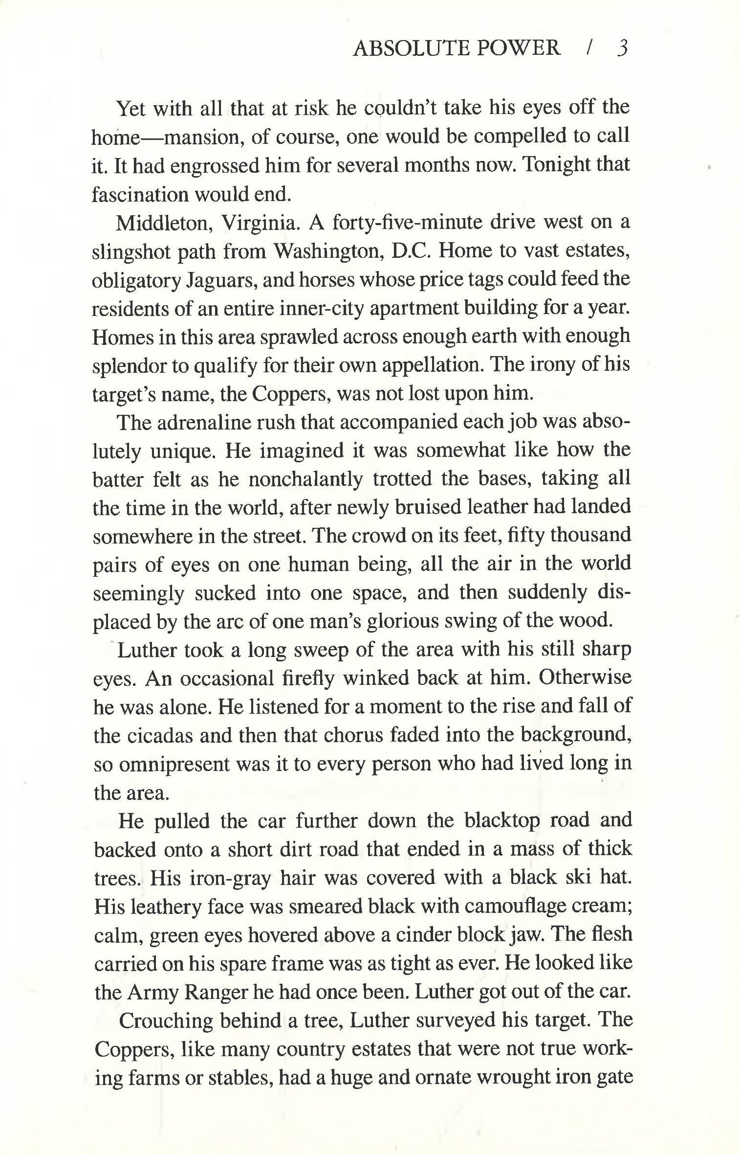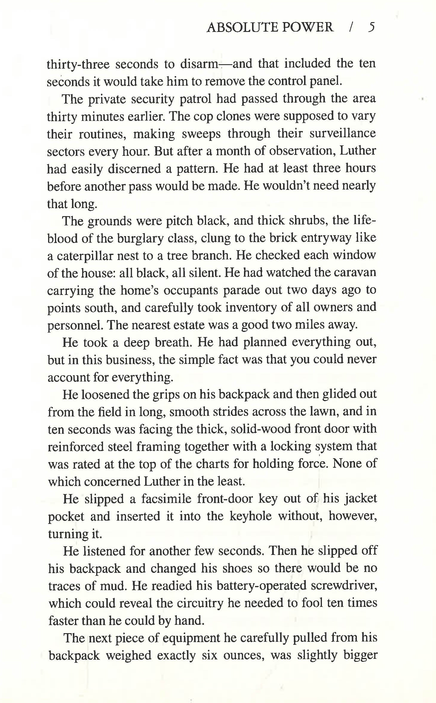 In this #1 New York Times bestselling thriller, a burglar, Luther Whitney, breaks into a Virginia mansion, and witnesses a brutal crime involving the president—a man who believes he can get away with anything.