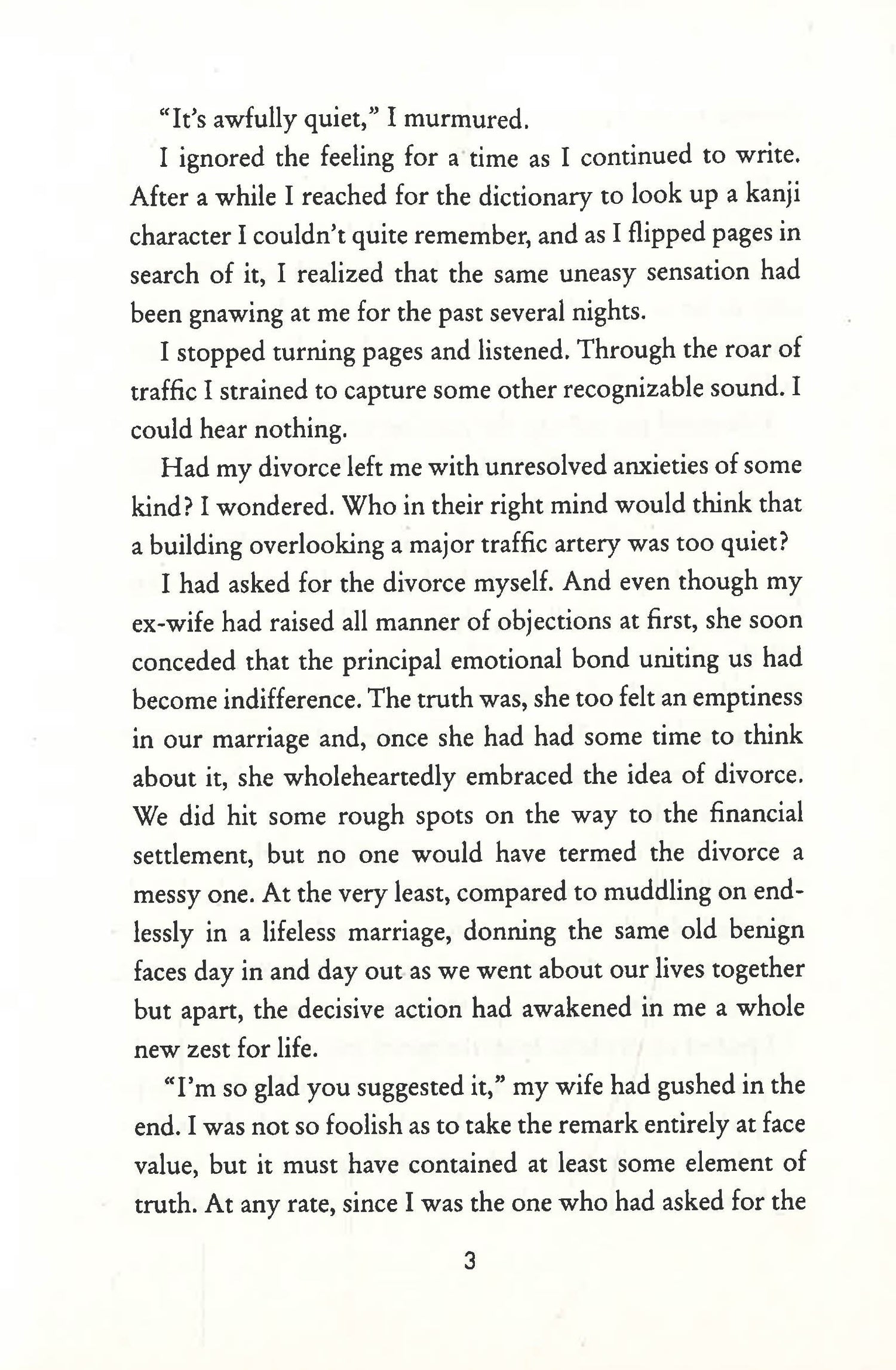 Screenwriter Harada is disconnected from the world. Lonely and jaded, he's drifted apart from his son and is dismissive when approached with gestures of friendship, including from a lonely and mysterious tenant who lives in his mostly empty apartment building.