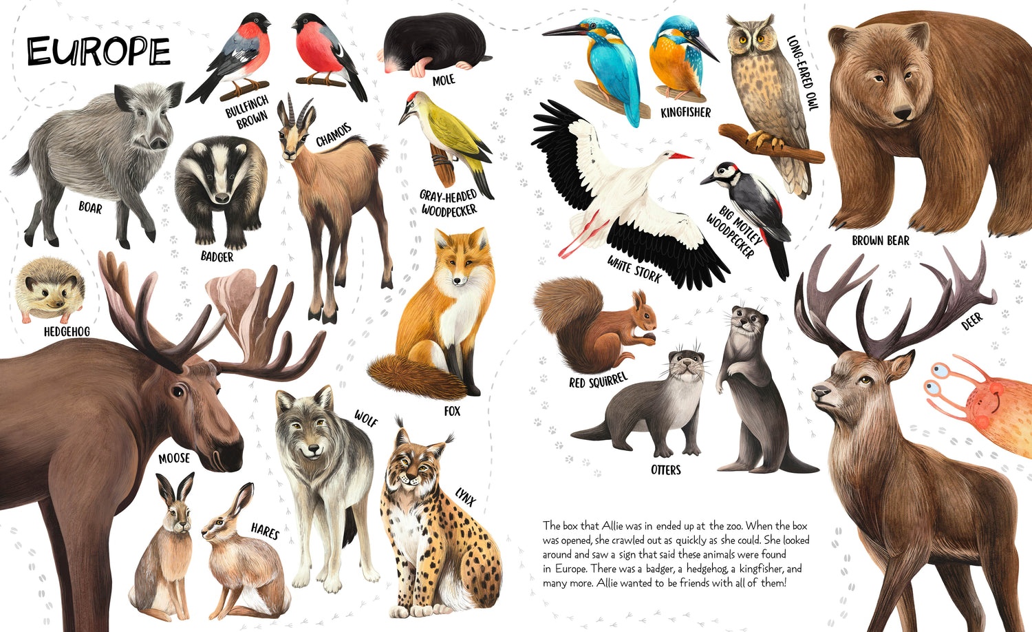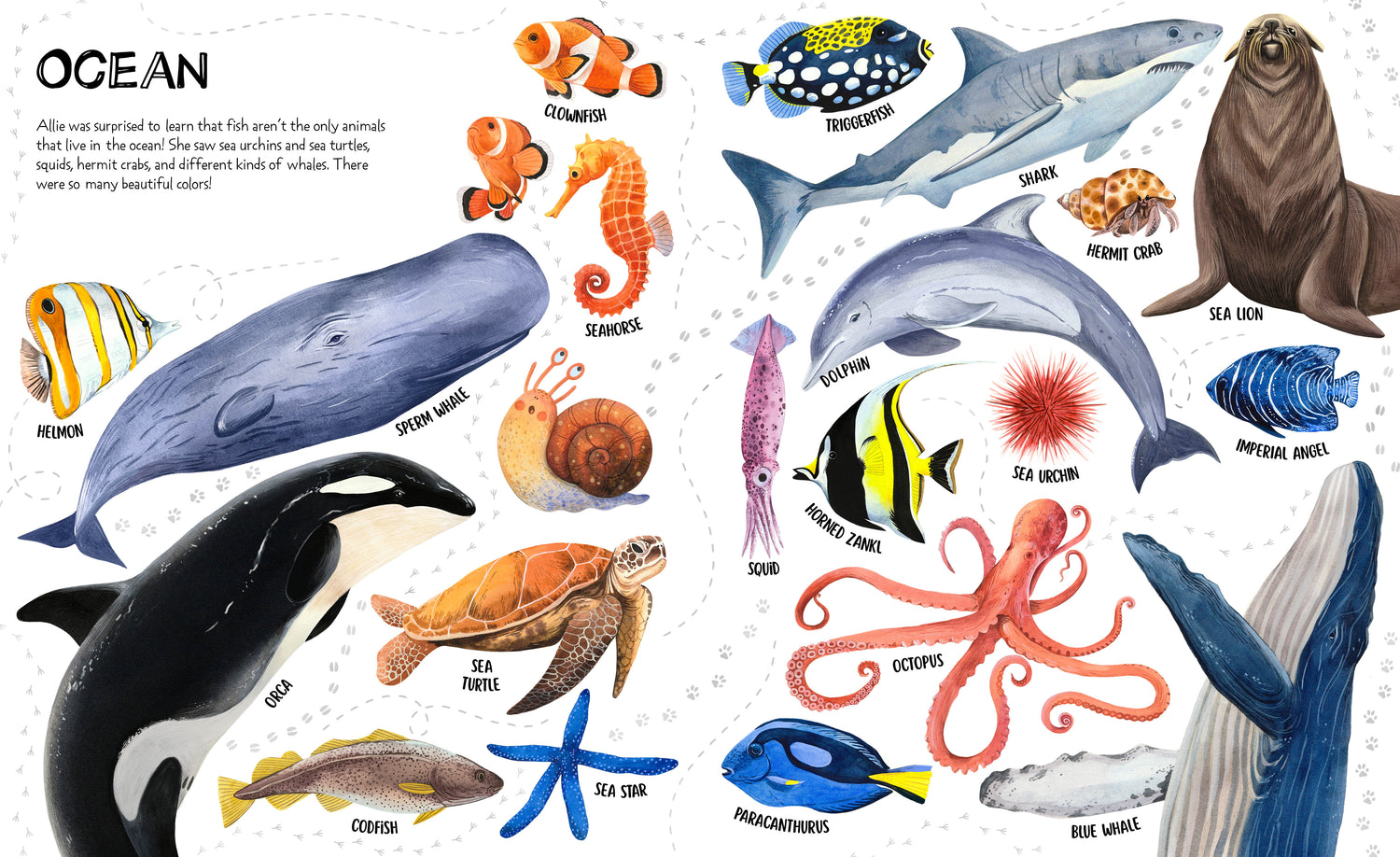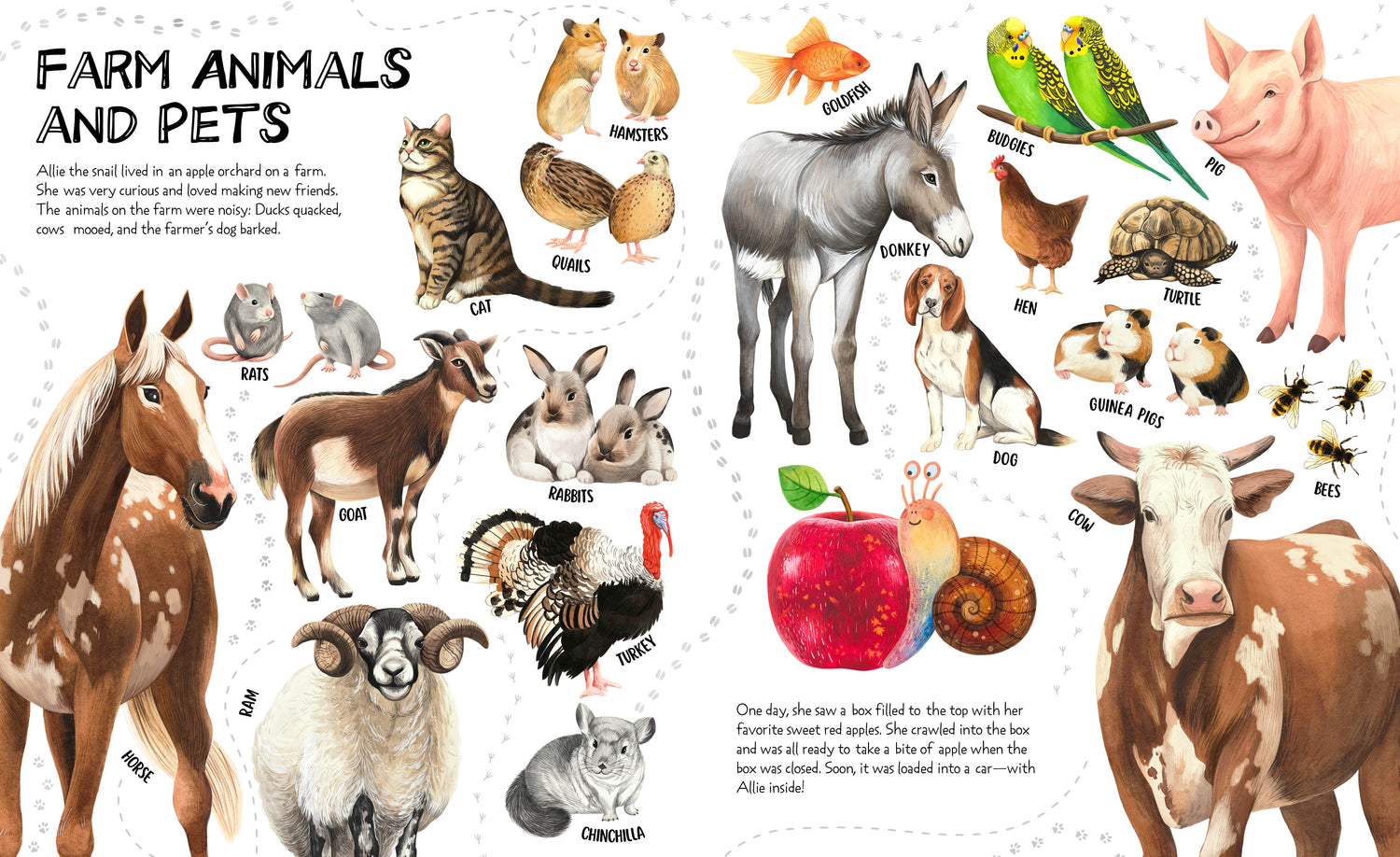 Clever’s Big Book of Amazing Animals is the engaging follow-up to Big Book of Colorful Foods, starring Allie the snail. In this animal adventure, Allie crawls into a box but doesn’t realize that the box is full of fruit that’s scheduled to be delivered! She travels around the world inside the box and meets a host of animals in their natural habitats. Allie goes to the jungle and meets an elephant, a chameleon, a lion, an ostrich, a giraffe, a hippopotamus, a zebra, and many more animals. Then she finds herself in the Arctic and face-to-face with a polar bear, penguins, an Arctic fox, a walrus, a snowy owl, a seal, and an Arctic tern. This engaging book is filled with detailed, realistic illustrations and fun facts about each habitat and the animals that are found there.