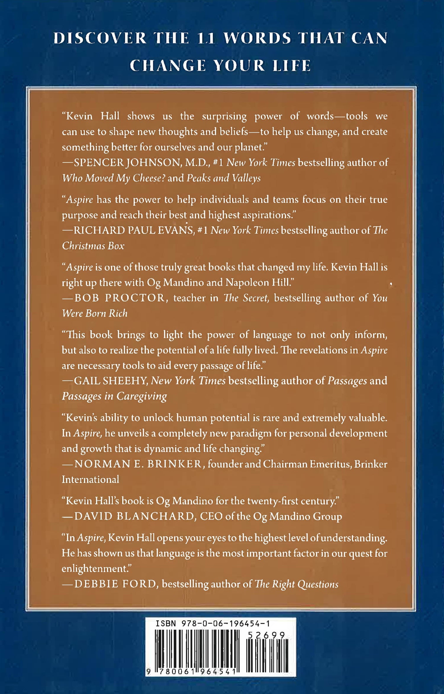 By focusing on eleven words-one per chapter--Aspire! shows how to use these words as building blocks for success and inner peace. The words, from the very familiar to the very unusual, will become touchstones in personal development and in business.