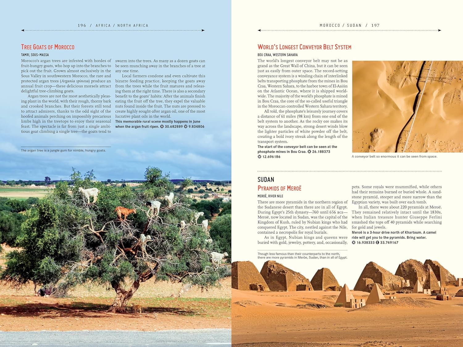 Every page gets to the very core of why humans want to travel in the first place: to be delighted and disoriented, uprooted from the familiar and amazed by the new. With its compelling descriptions, hundreds of photographs, surprising charts, maps for every region of the world, and new city guides, it is a book you can open anywhere and be transported. But proceed with caution: It’s almost impossible not to turn to the next entry, and the next, and the next.