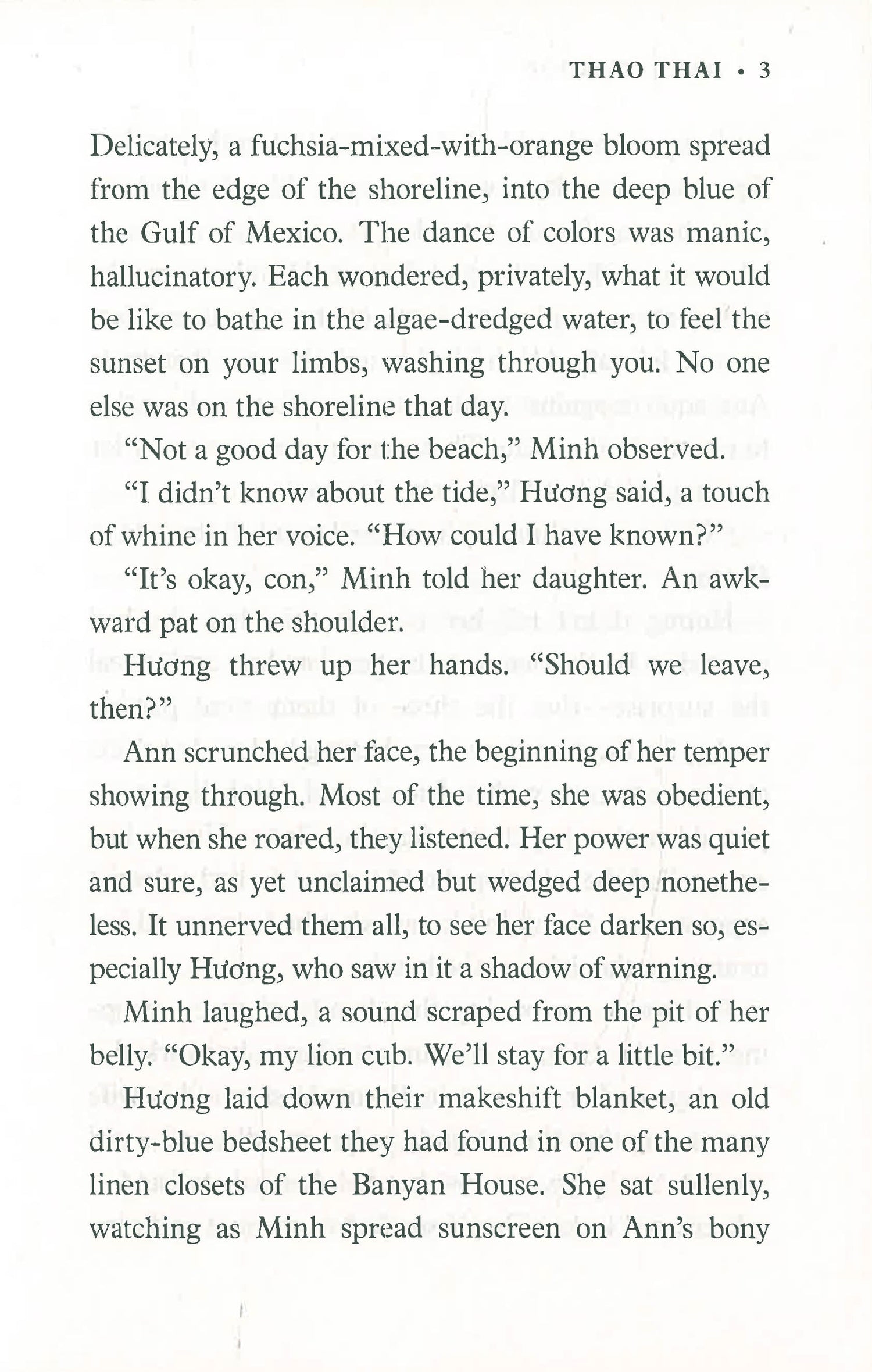 When Ann Tran gets the call that her fiercely beloved grandmother, Minh, has passed away, her life is already at a crossroads. In the years since she's last seen Minh, Ann has built a seemingly perfect life--a beautiful lake house, a charming professor boyfriend, and invites to elegant parties that bubble over with champagne and good taste--but it all crumbles with one positive pregnancy test. With both her relationship and carefully planned future now in question, Ann returns home to Florida to face her estranged mother, Huơng.