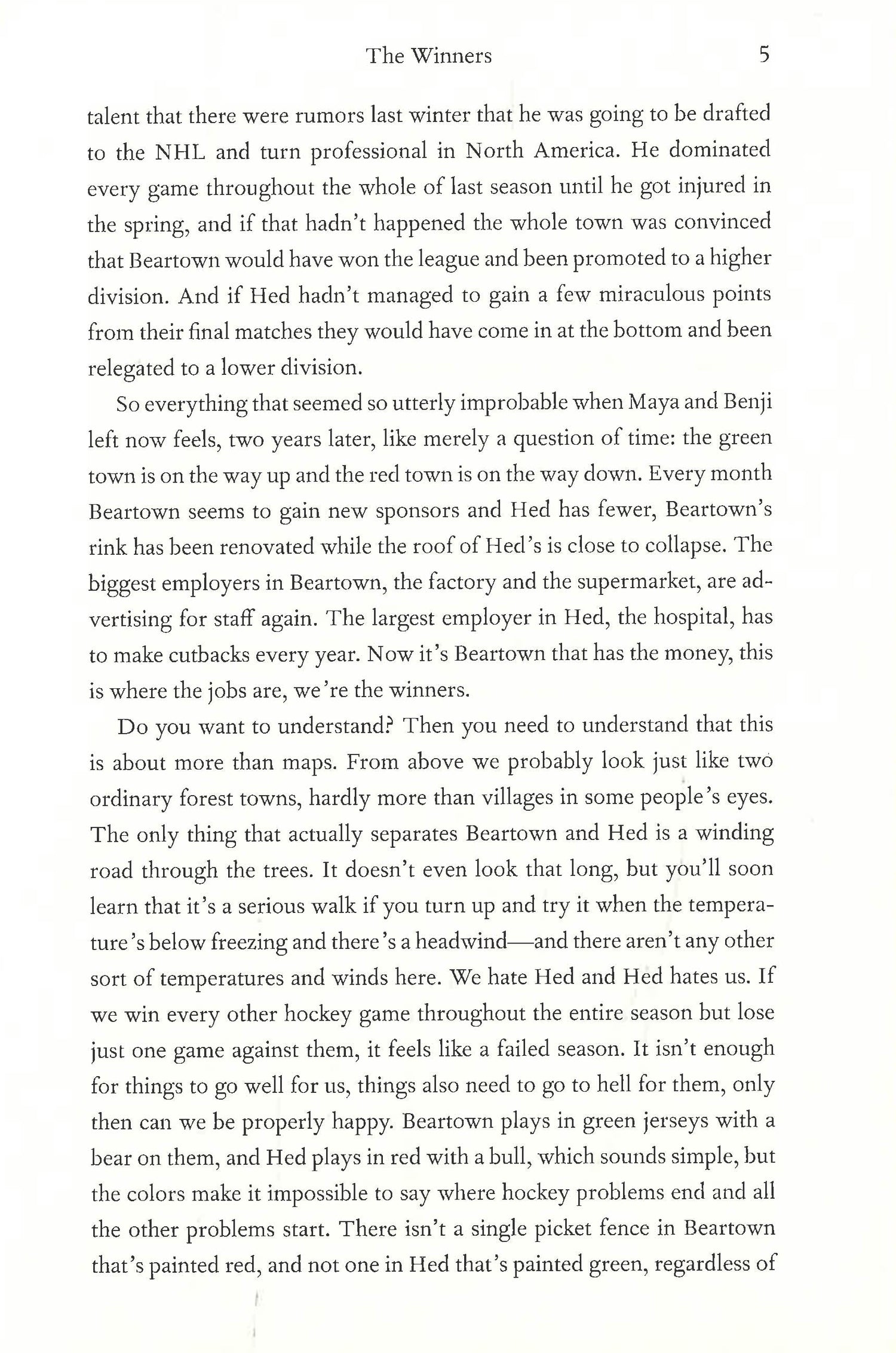 Maya’s parents, Peter and Kira, are caught up in an investigation of the hockey club’s murky finances, and Amat—once the star of the Beartown team—has lost his way after an injury and a failed attempt to get drafted into the NHL. Simmering tensions between the two towns turn into acts of intimidation and then violence. All the while, a fourteen-year-old boy grows increasingly alienated from this hockey-obsessed community and is determined to take revenge on the people he holds responsible for his beloved sister’s death. He has a pistol and a plan that will leave Beartown with a loss that is almost more that it can stand.