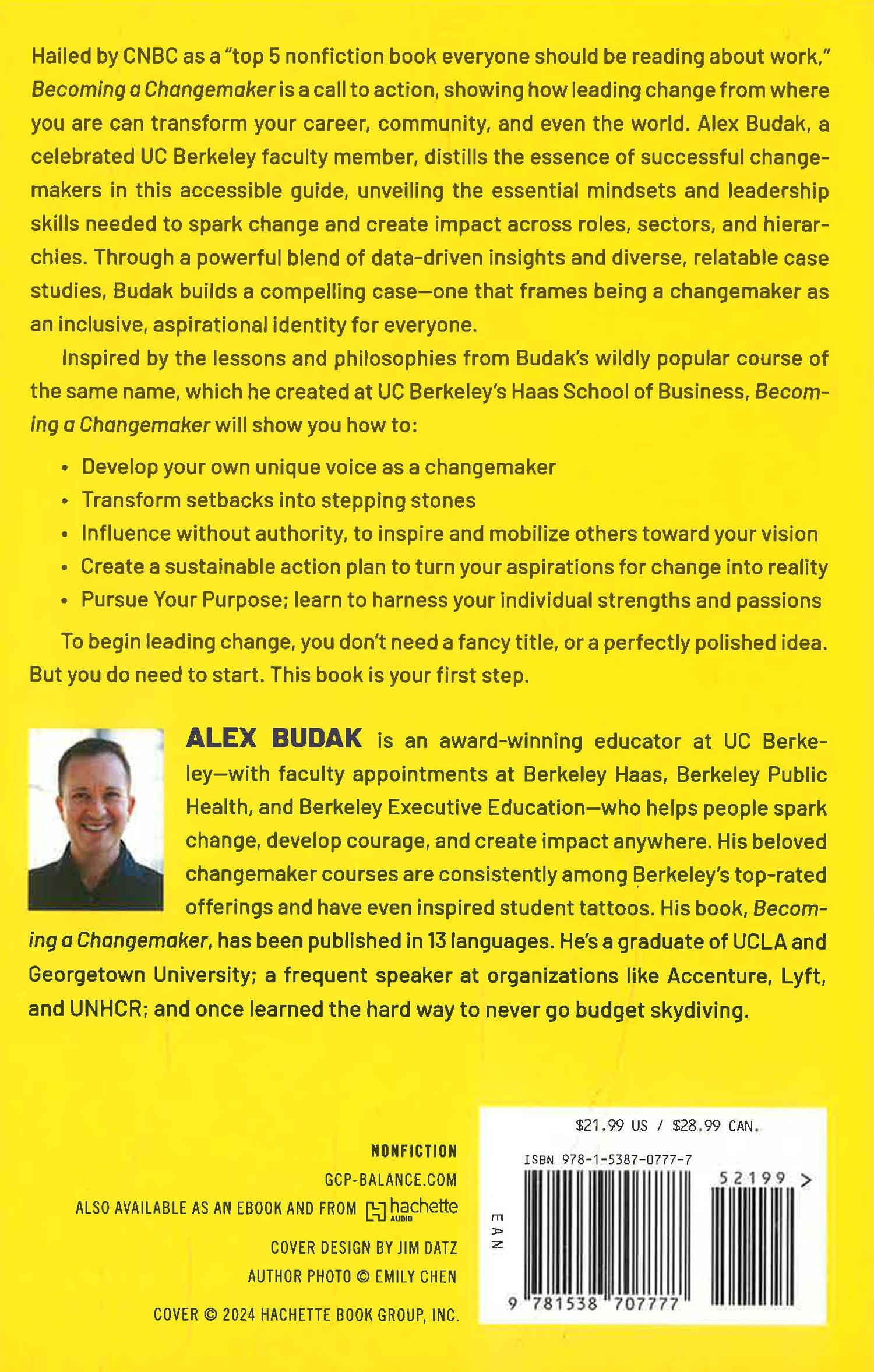 Hailed by CNBC as a "top 5 non-fiction book everyone should be reading about work," Becoming a Changemaker is a call to action, showing how leading change from where you are can transform your career, community and even the world. Alex Budak, a celebrated UC Berkeley faculty member, distills the essence of successful changemakers in this accessible guide, unveiling the essential mindsets and leadership skills needed to spark change and create impact across roles, sectors, and hierarchies. Through a powerful blend of data-driven insights and diverse, relatable case studies, Budak builds a compelling case, one that frames being a changemaker as an inclusive, aspirational identity for everyone.
