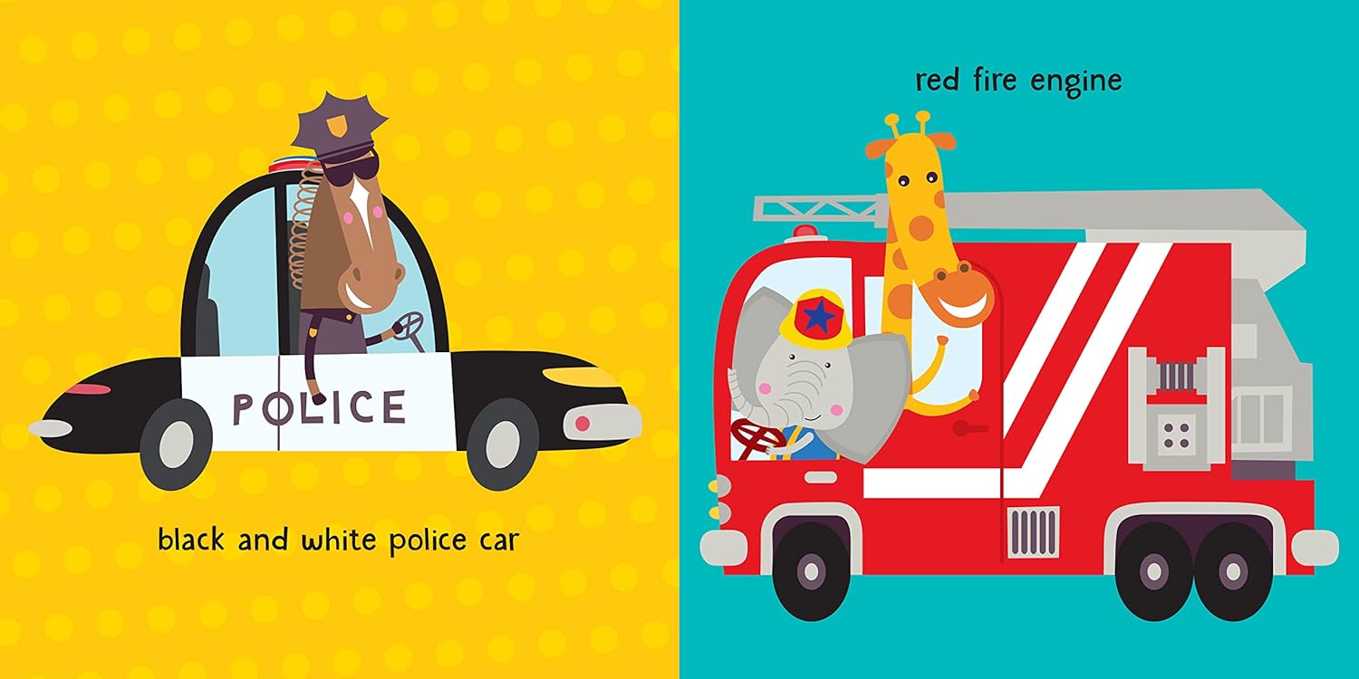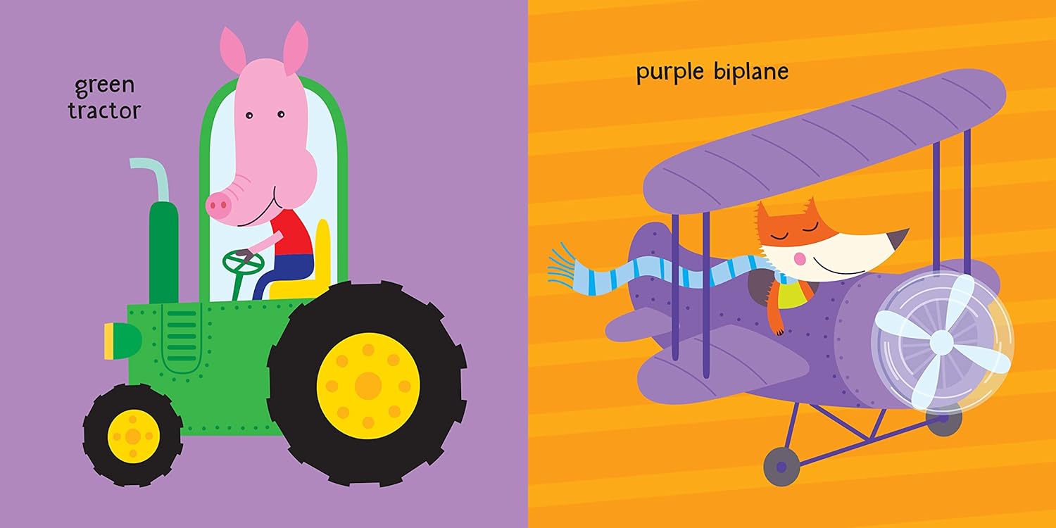 Lions and giraffes--start your engines! Get ready to learn all about colors in this adorable touch-and-feel book full of cool vehicles and silly animals in every shade of the rainbow.