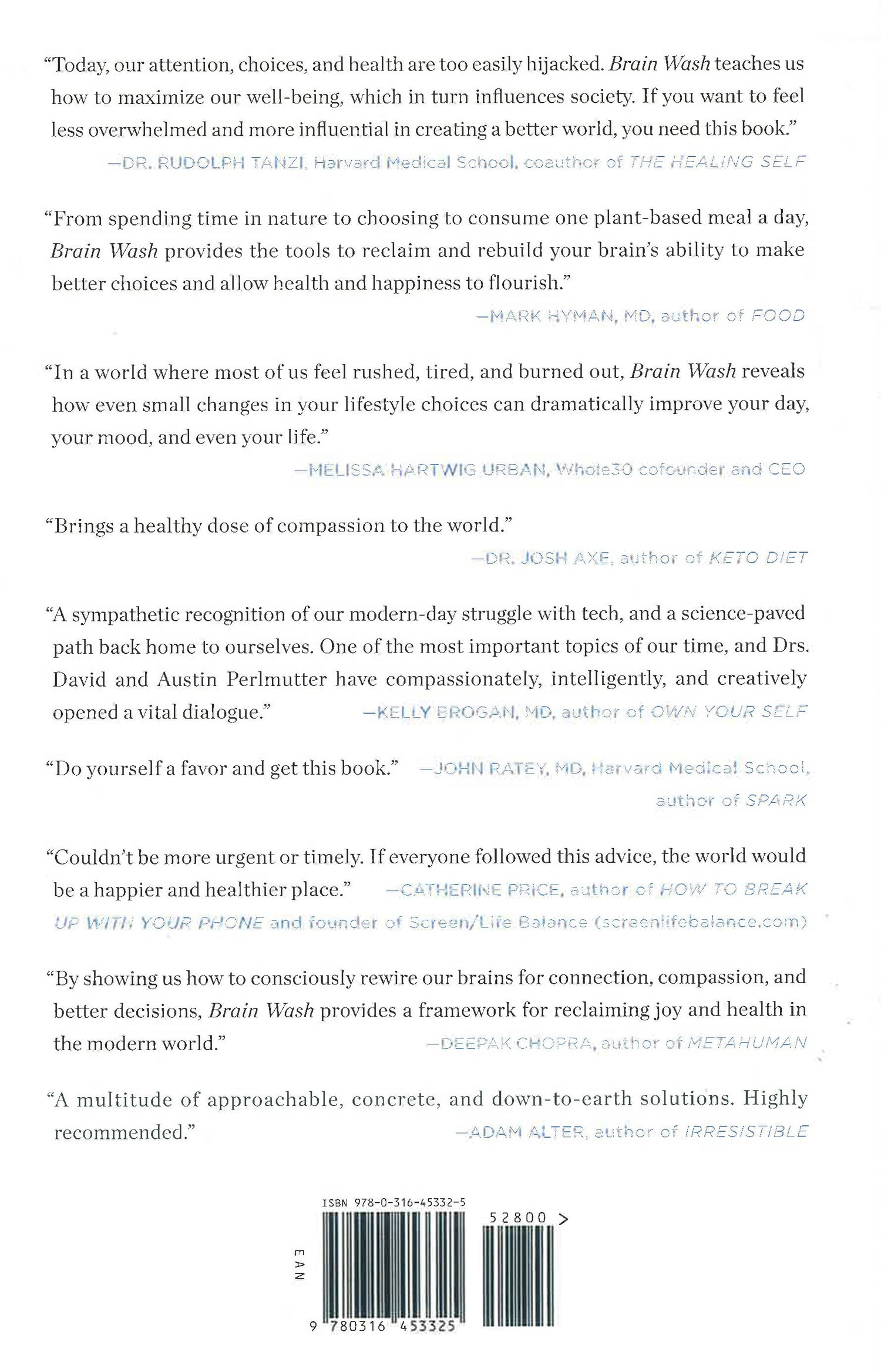 Based on the latest science, the book identifies the mental hijacking that undermines each and every one of us, and presents the tools necessary to think more clearly, make better decisions, strengthen bonds with others, and develop healthier habits. Featuring a 10-day bootcamp program, including a meal plan and 40 delicious original recipes, Brain Wash is the key to cultivating a more purposeful and fulfilling life.