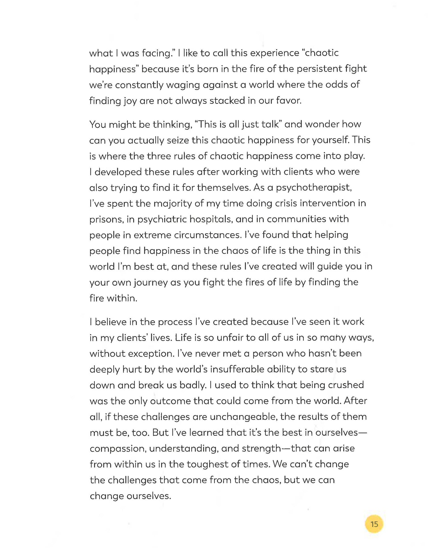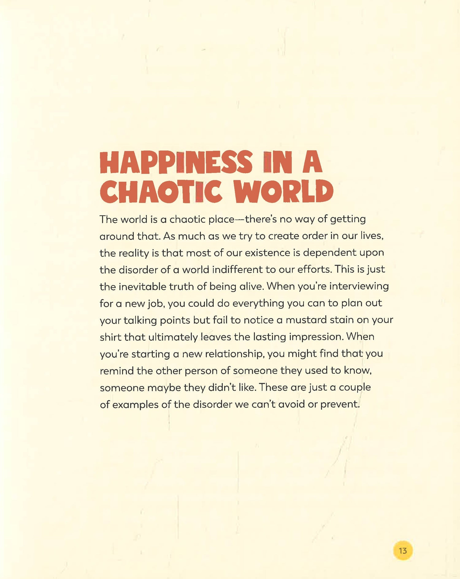 Through a combination of self-help advice and exercises, you'll embark on your own journey to discovering “Chaotic Happiness” for yourself and develop skills that will help you hold onto it. You'll learn how to explore your own psyche, improve the quality of your relationships, and understand the impact of the outside world. By working through this evidence-based collection of interventions you’ll have all the tools you need to combat the chaotic world and arrive at your happiest self.