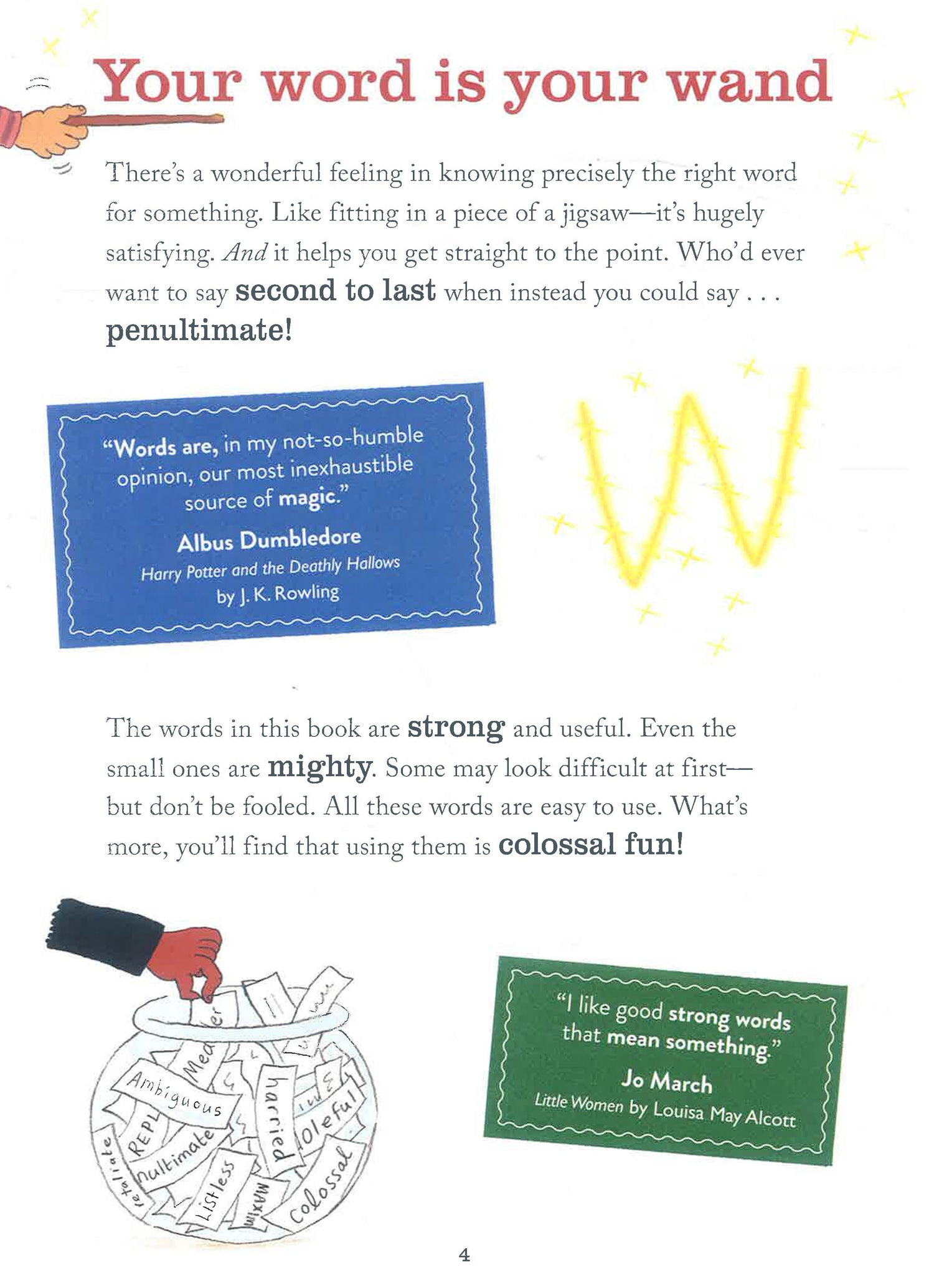 From Ambiguous to Zealous, the words in this book are for 7-to-12-year-olds. It may seem inconceivable for one book to encompass such a wide age span! But in fact, inconceivable – and all the other words in this book – were selected from vocabulary lists intended for older children, so that younger children can challenge themselves and discover a wealth of great new words!