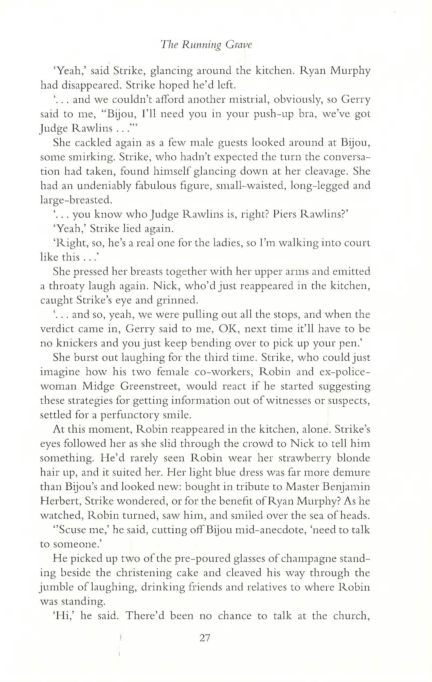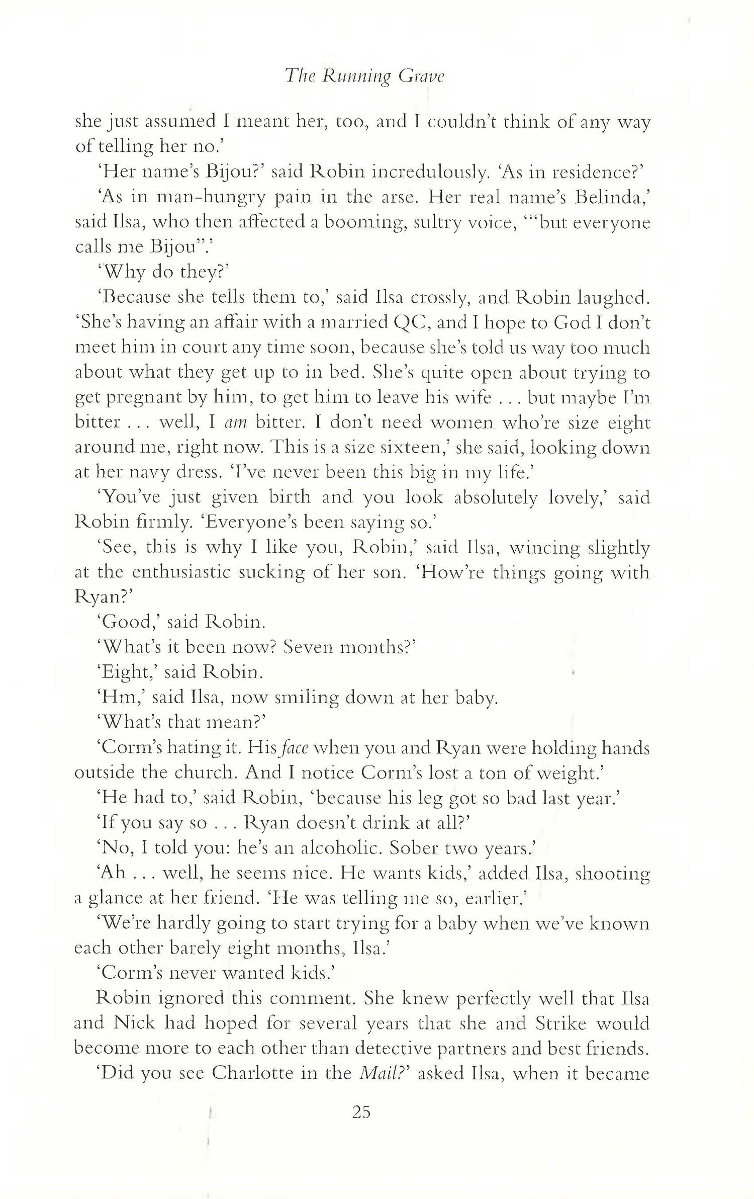 In order to try to rescue Will, Strike's business partner, Robin Ellacott, decides to infiltrate the cult, and she travels to Norfolk to live incognito among its members. But in doing so, she is unprepared for the dangers that await her there or for the toll it will take on her. . .