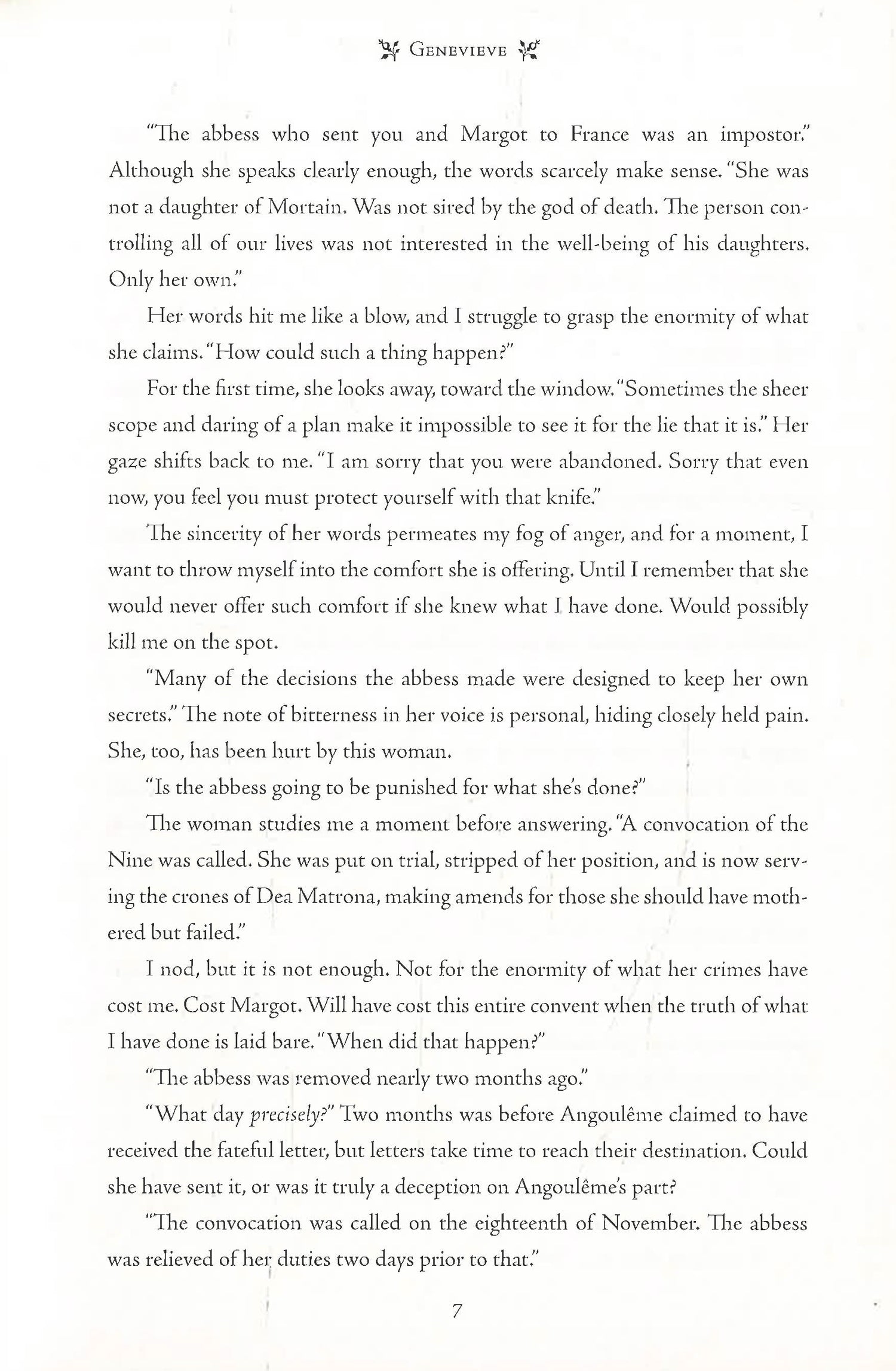 After months of seeking her out, Sybella has finally made contact with a fellow novitiate of the convent, Genevieve, a mole in the French court. But Sybella, having already drawn the ire of the French regent, may not be able to depend on her sister and ally as much as she hoped. Still, Death always finds a way, even if it’s not what one expects.