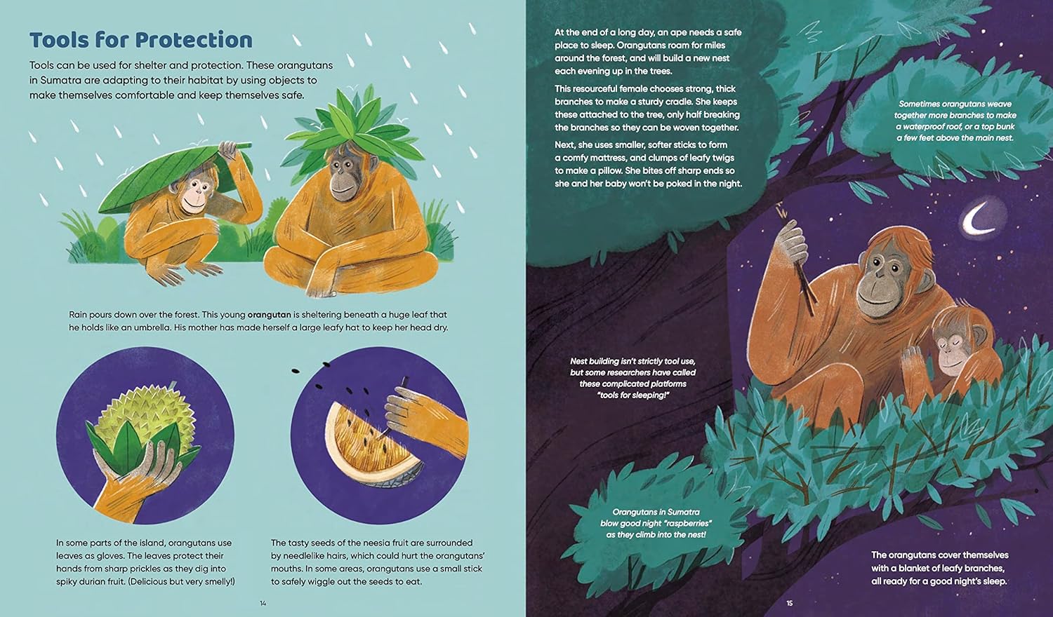 From apes to otters to clever crows, this beautifully illustrated non-fiction picture book tells stories of amazing tool-using animals that use objects in crafty ways.