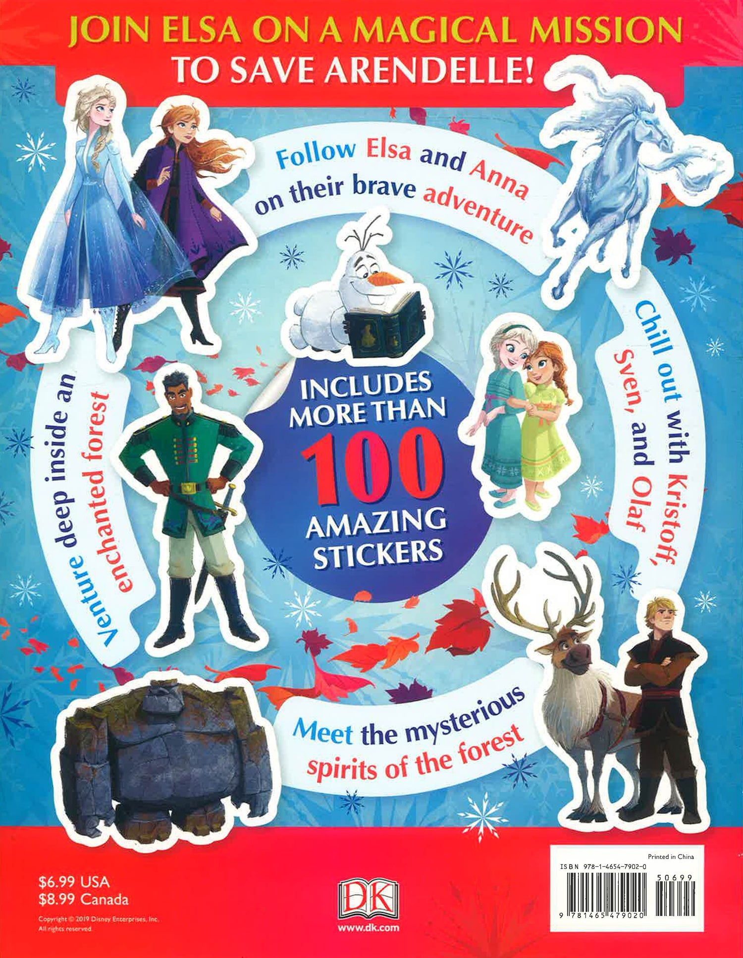 Enter the magical world of Disney Frozen 2 with this beautiful sticker book, filled with more than 100 stickers! Join Elsa and Anna on a magical mission to save Arendelle! Follow the sisters, along with Kristoff, Sven, and Olaf on their brave adventure. Meet mysterious spirits and venture deep inside an enchanted forest. Learn about all your favorite Disney Frozen 2 characters, with more than 100 magical stickers. (c)2019 Disney