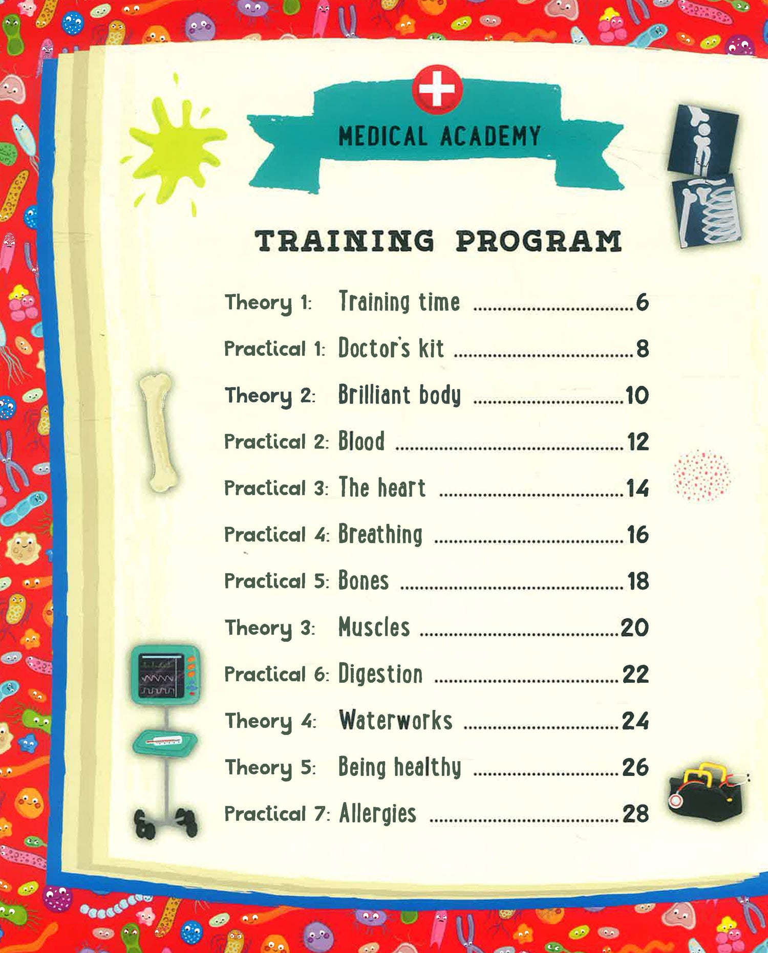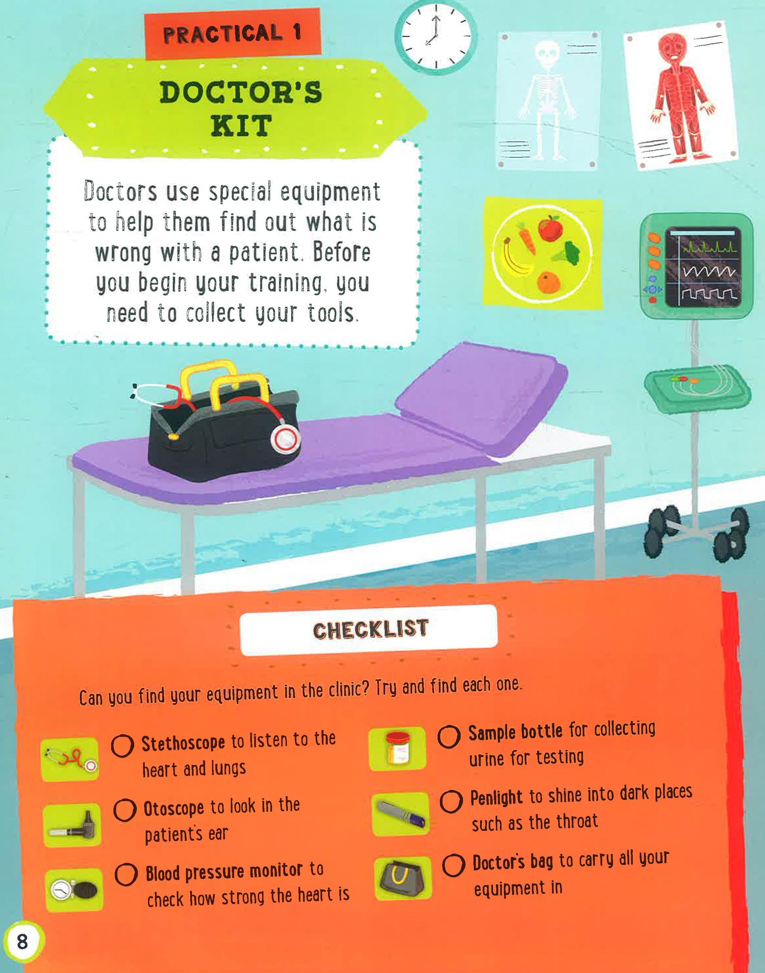 Simple activities will test your skills and reinforce the information you read in the book. Can you drive an ambulance to an emergency? Or tie the perfect bandage? Or even take out somebody's tonsils? Take a look inside to find out!