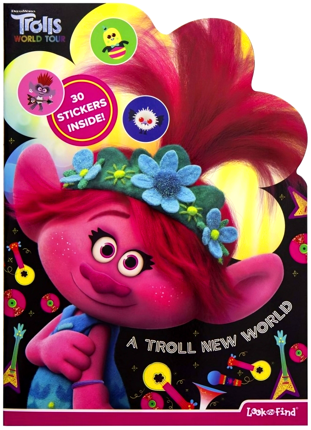 This colorful Look and Find book features shaped pages and lots of Trolls fun! Find hidden hearts, roller skates, rainbows, and more troll-tastic treasures as you meet Troll friends, old and new! Includes 30 stickers!