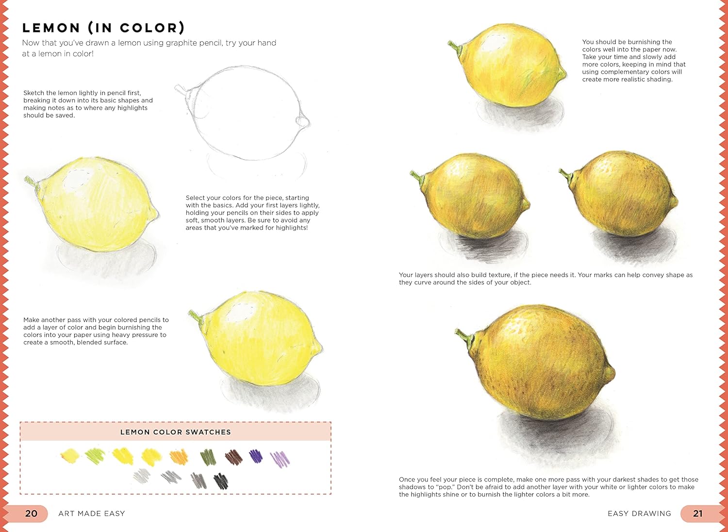 Easy Drawing offers beginning artists a definite way to succeed. Without getting bogged down in a lot of technical detail, aspiring artists just need to gather a few inexpensive supplies and put pencil to paper! Even if you have never drawn before, the engaging yet easy subjects are simple to re-create by following the step-by-step progressive images.
