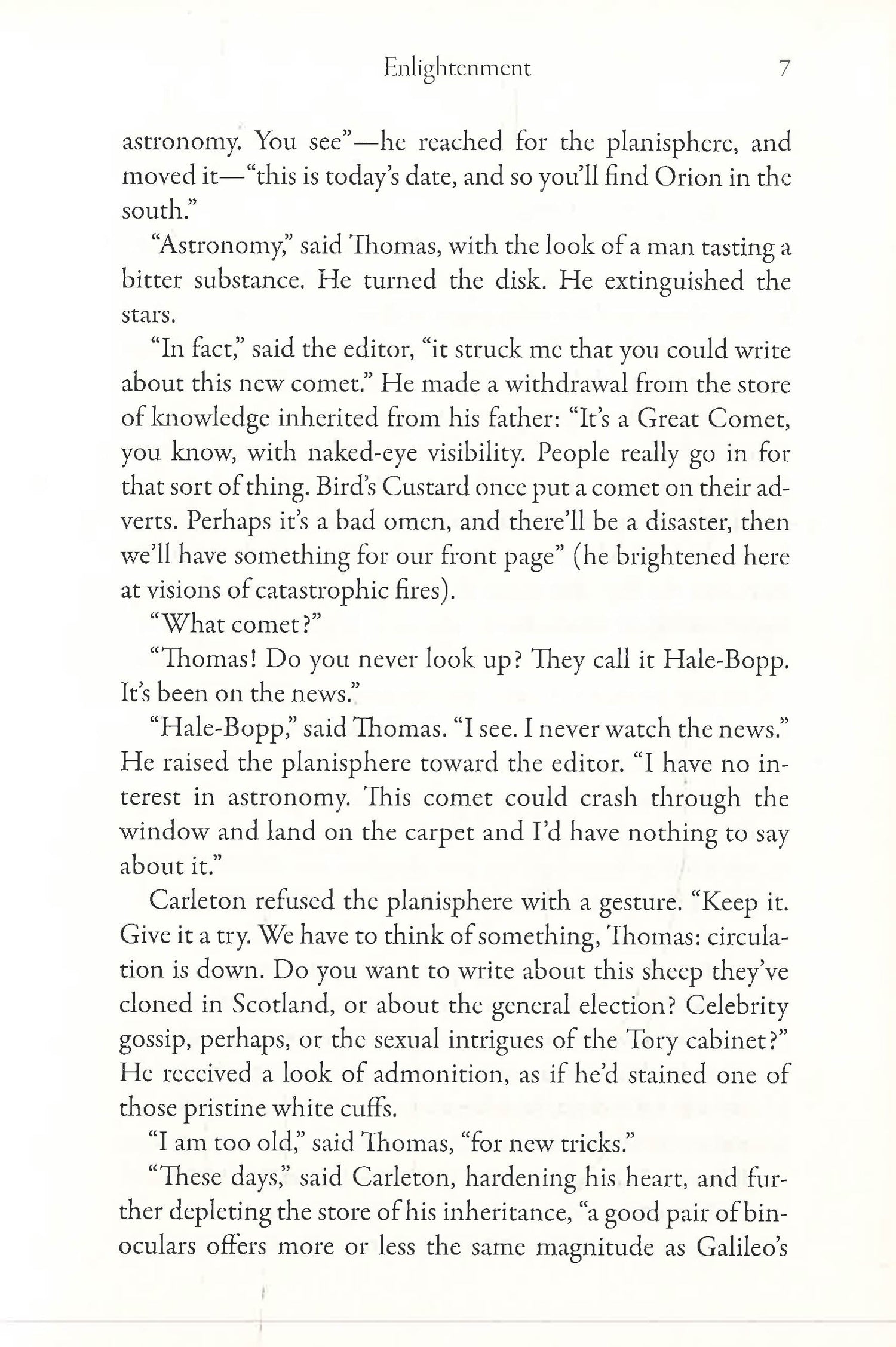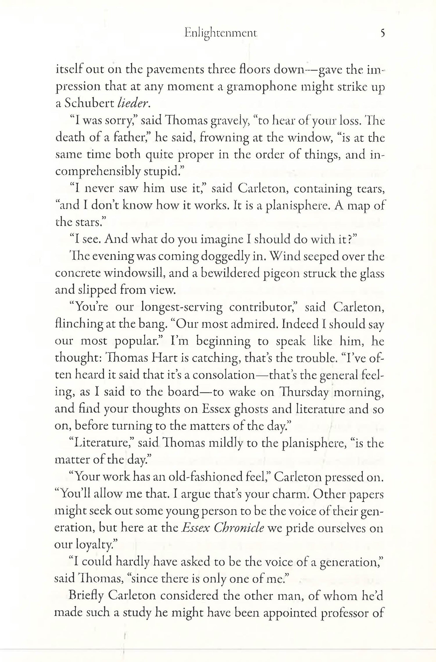 "Like A.S. Byatt's Possession, Enlightenment is a baroque, genre-bending novel of ideas, ghosts and hidden histories. A richly layered epic....a heartfelt paean to the consolations of the sublime, where religion and science meet." -- Telegraph