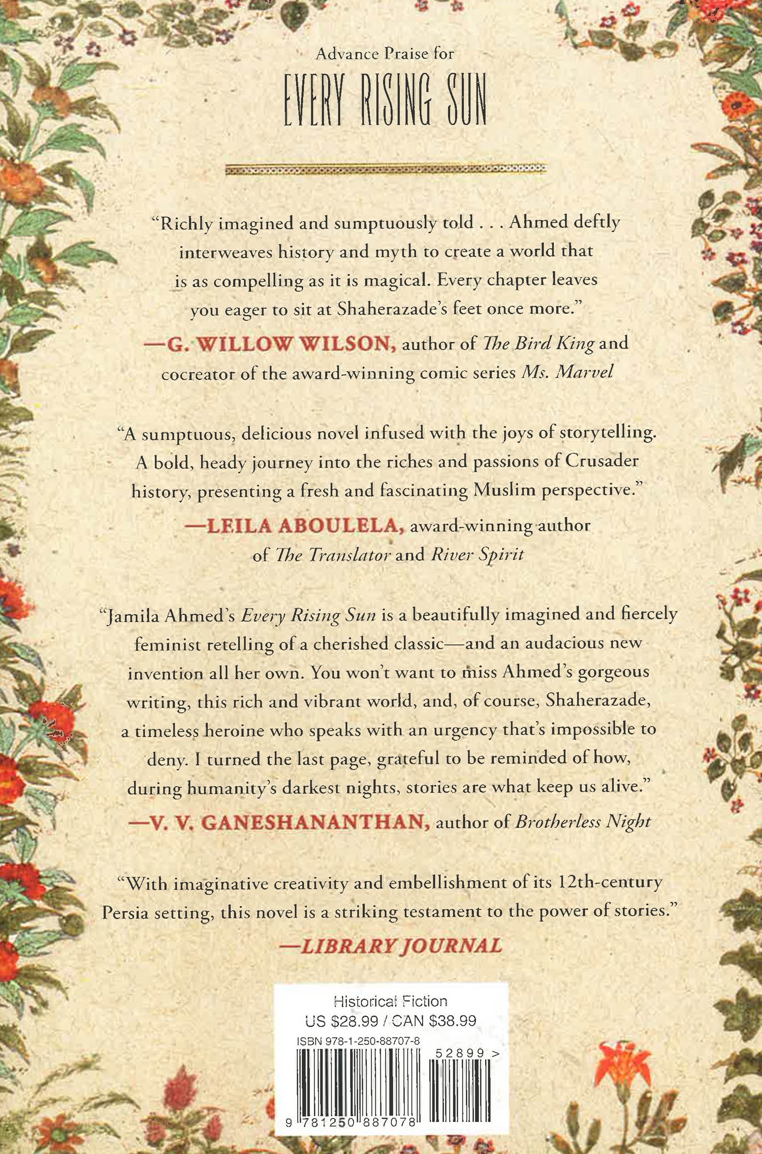 But the Malik’s rage runs too deep for Shaherazade to exorcise alone. And so she and her father persuade the Malik to leave Persia to join Saladin’s fight against the Crusaders in Palestine. With plots spun against the Seljuks from all corners, Shaherazade must maneuver through intrigue in the age’s greatest courts to safeguard her people. All the while, she must keep the Malik enticed with her otherworldly tales―because the slightest misstep could cost Shaherazade her head.