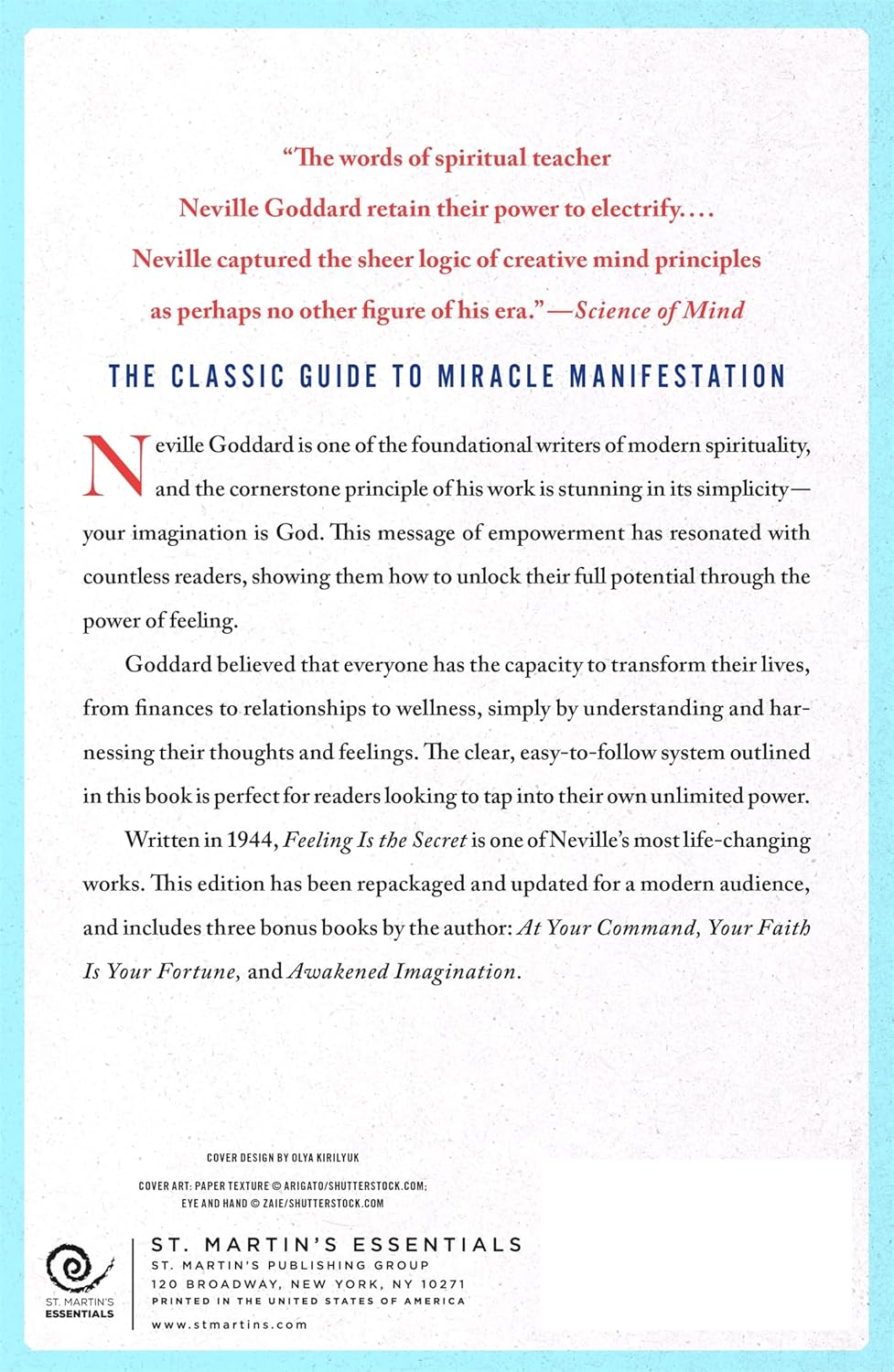 Written in 1944, The Feeling Is the Secret is one of Neville’s most life-changing works. This edition has been repackaged and updated for a modern audience, and includes a new introduction by the publisher as well as a bonus book, Awakened Imagination.