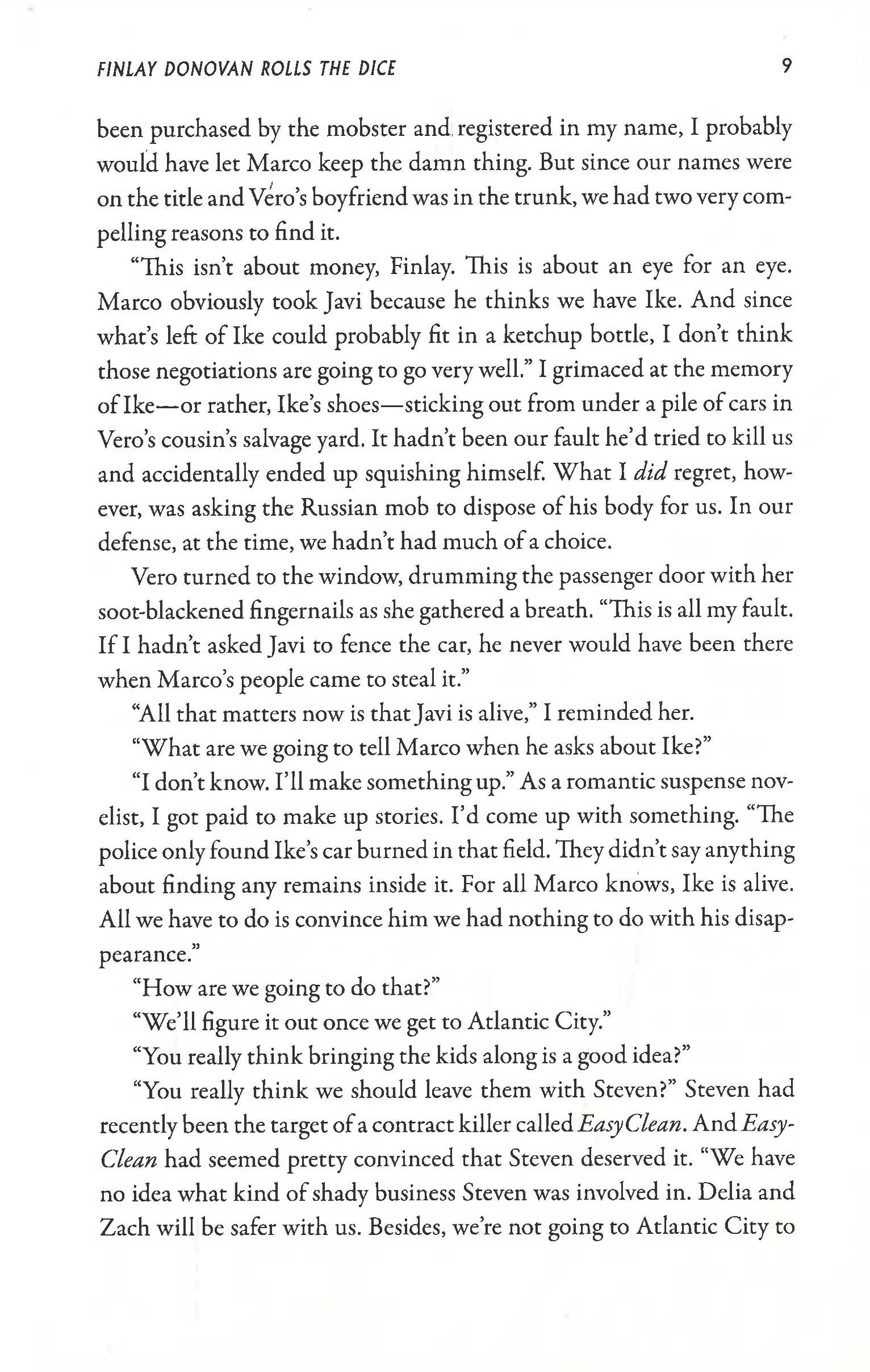 But when they sneak into the loan shark’s suite to search for clues, they find more than they bargained for―Marco's already dead. They don’t have a clue who murdered him, only that they themselves have a very convincing motive. Then four members of the police department unexpectedly show up in town, also looking for Ike―and after Finlay's night with hot cop Nick at the police academy, he’s a little too eager to keep her close to his side.