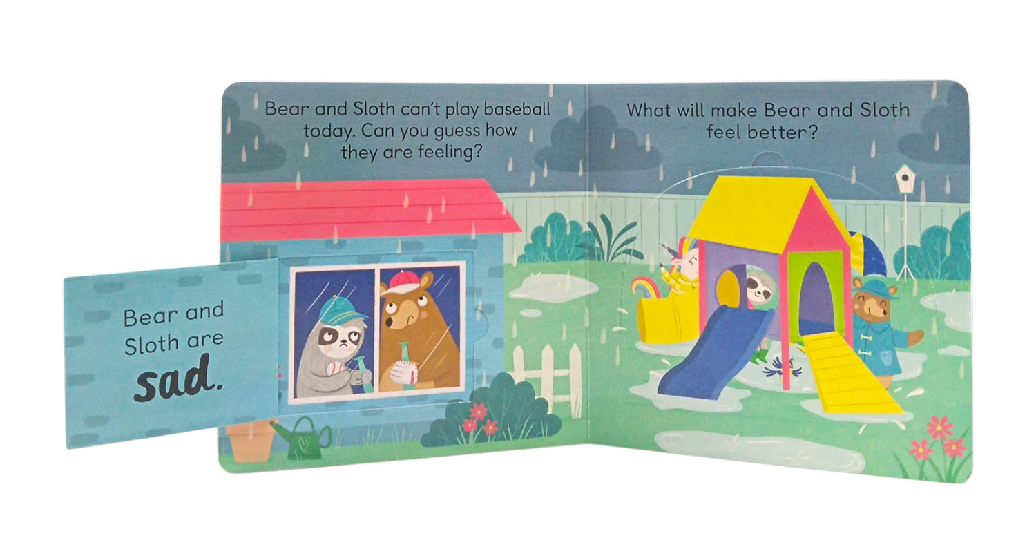 Exploring emotions and learning how to deal with them is an important part of social emotional learning for children. This sturdy board book, which features adorable artwork from the illustrator of Clever's popular title Don't Wake the Dragon, is part of the First Feelings collection of books from Clever. The story takes young readers along as Unicorn experiences some sad events: a broken toy; a friend getting hurt while playing; another friend dropping an ice-cream cone; and a day of playing baseball ruined by the rain. For each situation, young readers see the event that has led to Unicorn feeling sad, and then can lift the large flaps on every spread to see what might make Unicorn feel better. Engaging prompts on each page encourage children to try to think about why Unicorn is sad in a particular situation, and what might happen next to make her feel better. There's even a prompt at the end of the book for young readers to think about different things that make them feel sad, and a spread full of flaps to lift.