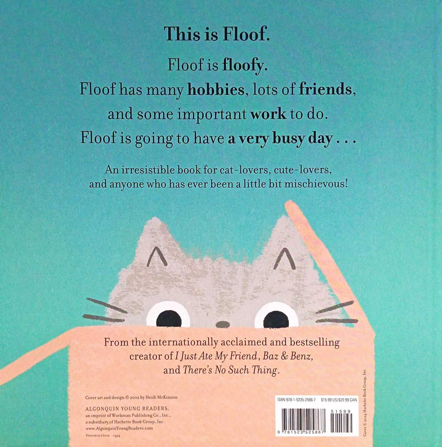 Kids (and grownups!) will delight in noticing that when the text says one thing, the pictures say something very different. Floof also gently (and humorously) teaches readers the importance of self-love, self-care, and self-belief. This floofy cat is sure to make every reader smile!